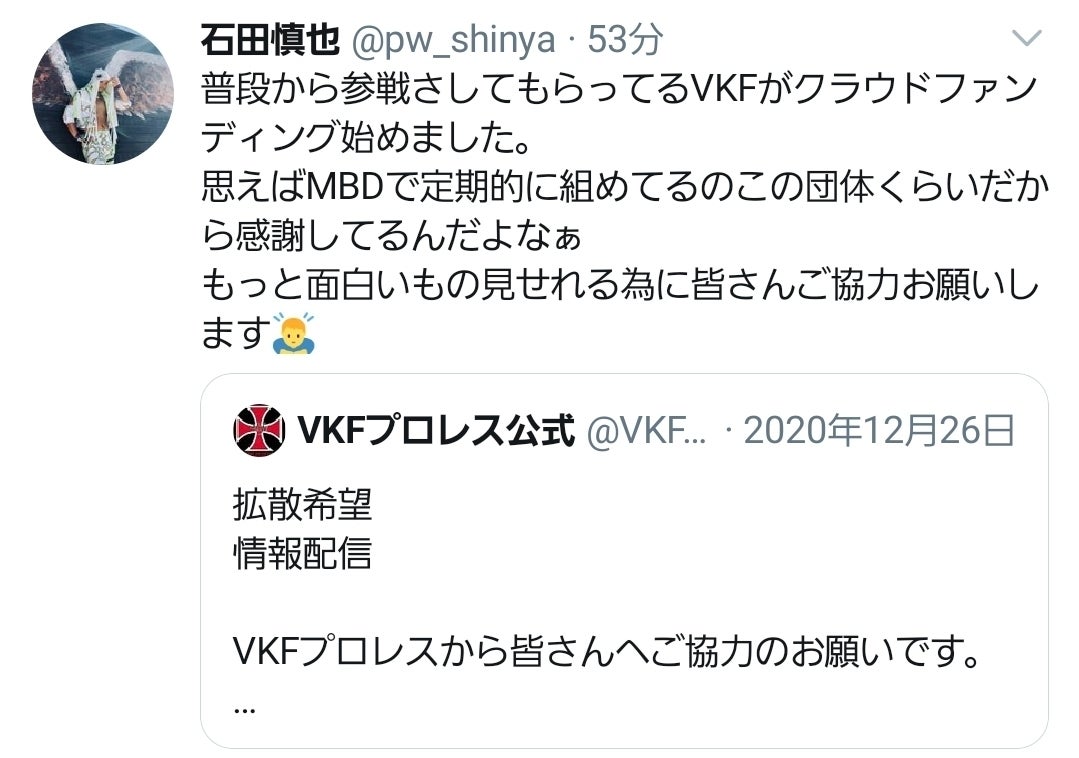 VKFプロレス参戦選手からの応援メッセージ 石田慎也 編