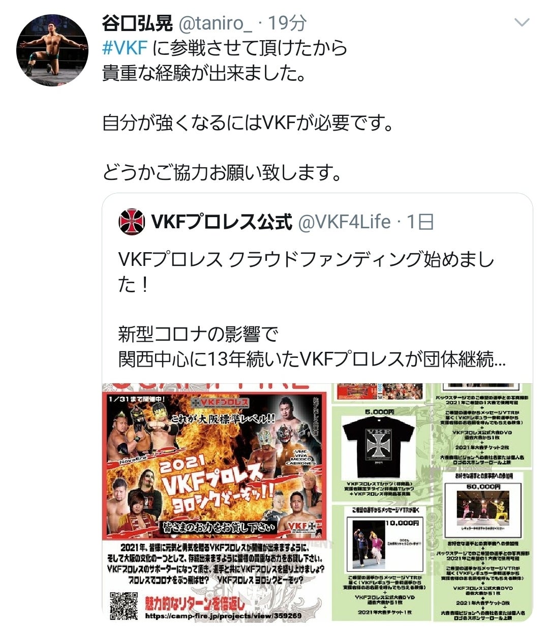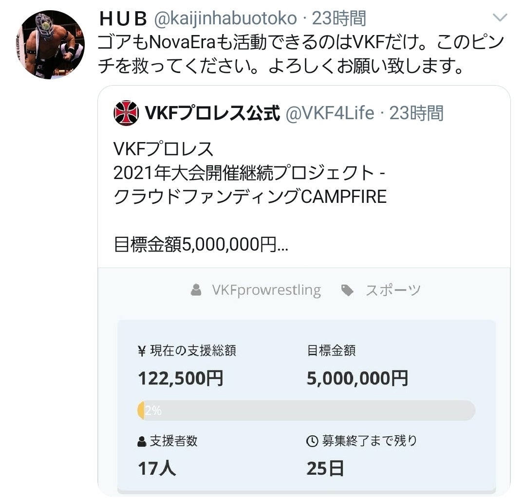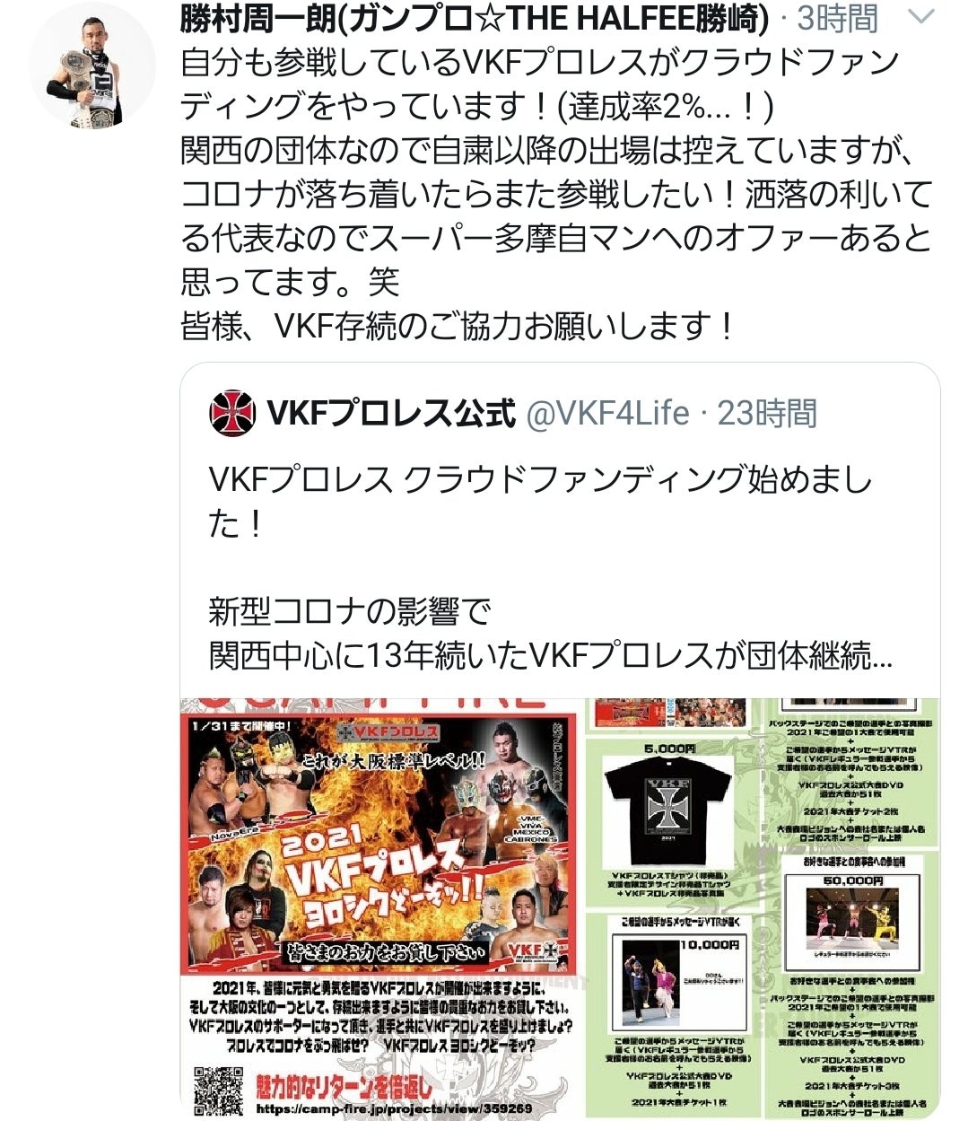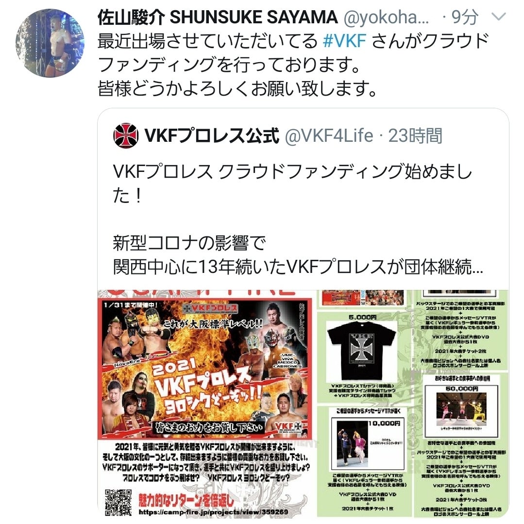 クラウドファンディング- CAMPFIRE CM 「スガヌマオサム編」2021年VKFプロレスが開催が出来ますように、 存続出来ますように皆様の貴重なお力をお貸し下さい。