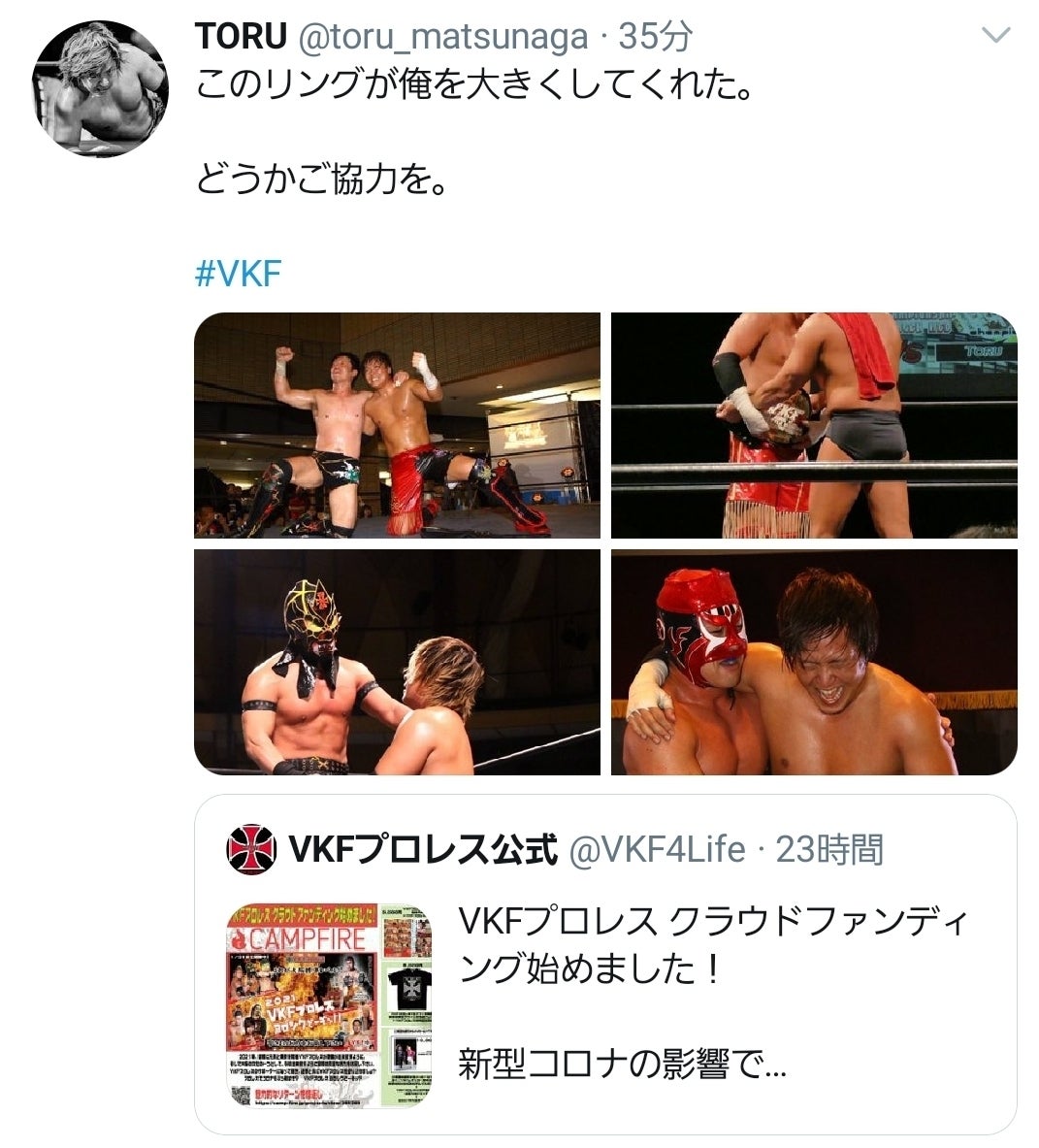 VKFプロレス参戦選手からの応援メッセージ TORU編第9代VKF王者インディー統一連合TTTプロレスリング