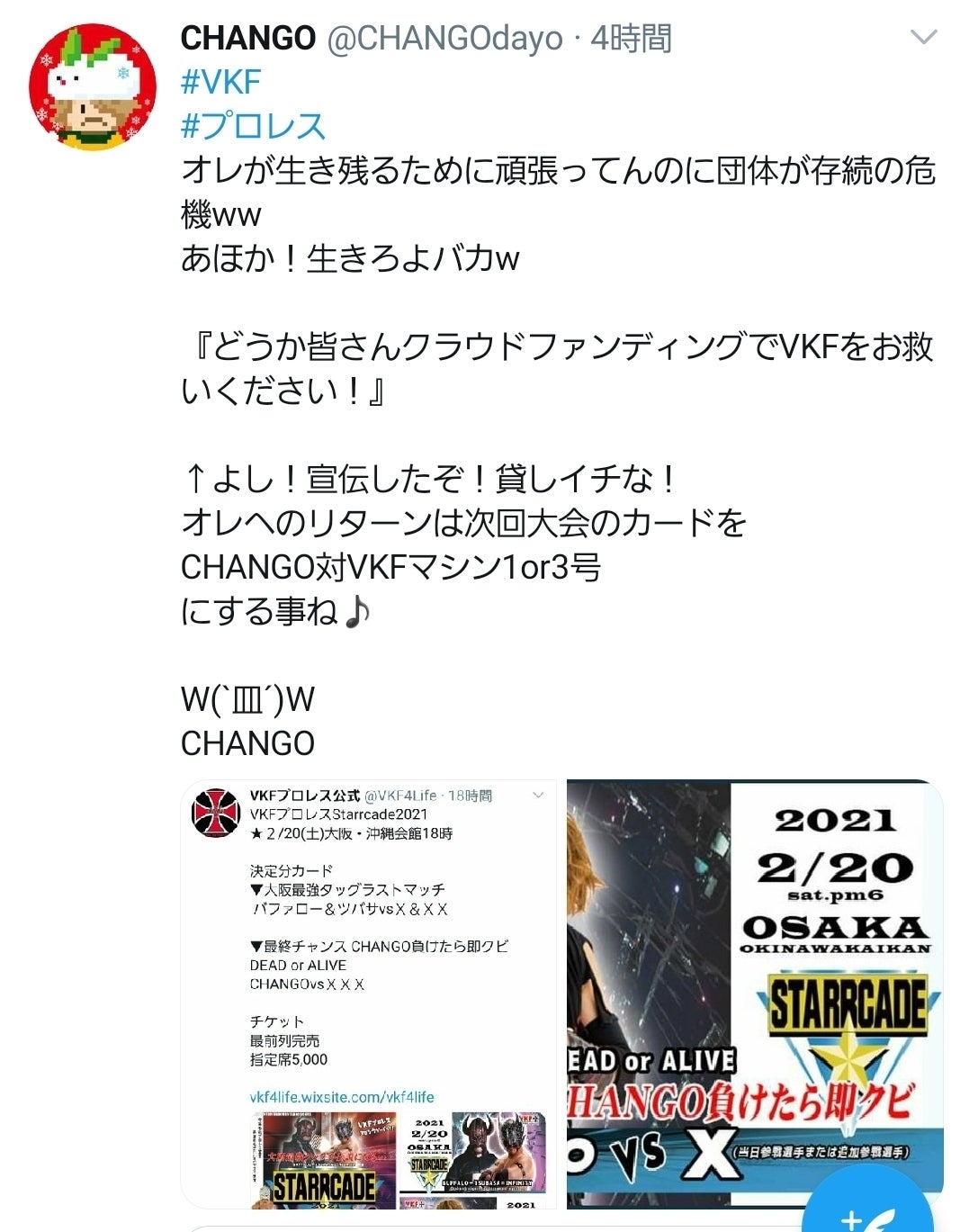 VKFプロレス参戦選手からの応援メッセージ CHANGO編