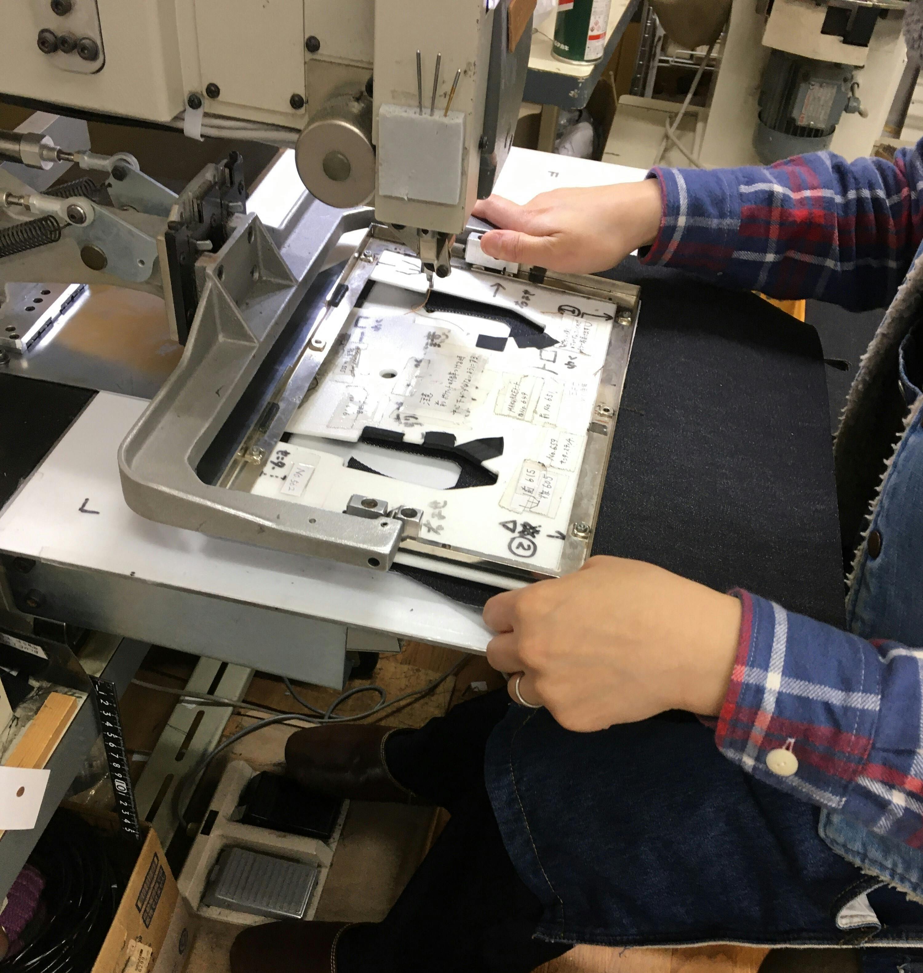 自動と言えども扱うのにコツがいるミシンで、野崎製作所では長年コンピュータミシンを担当している方が熟練の技で縫い上げています。