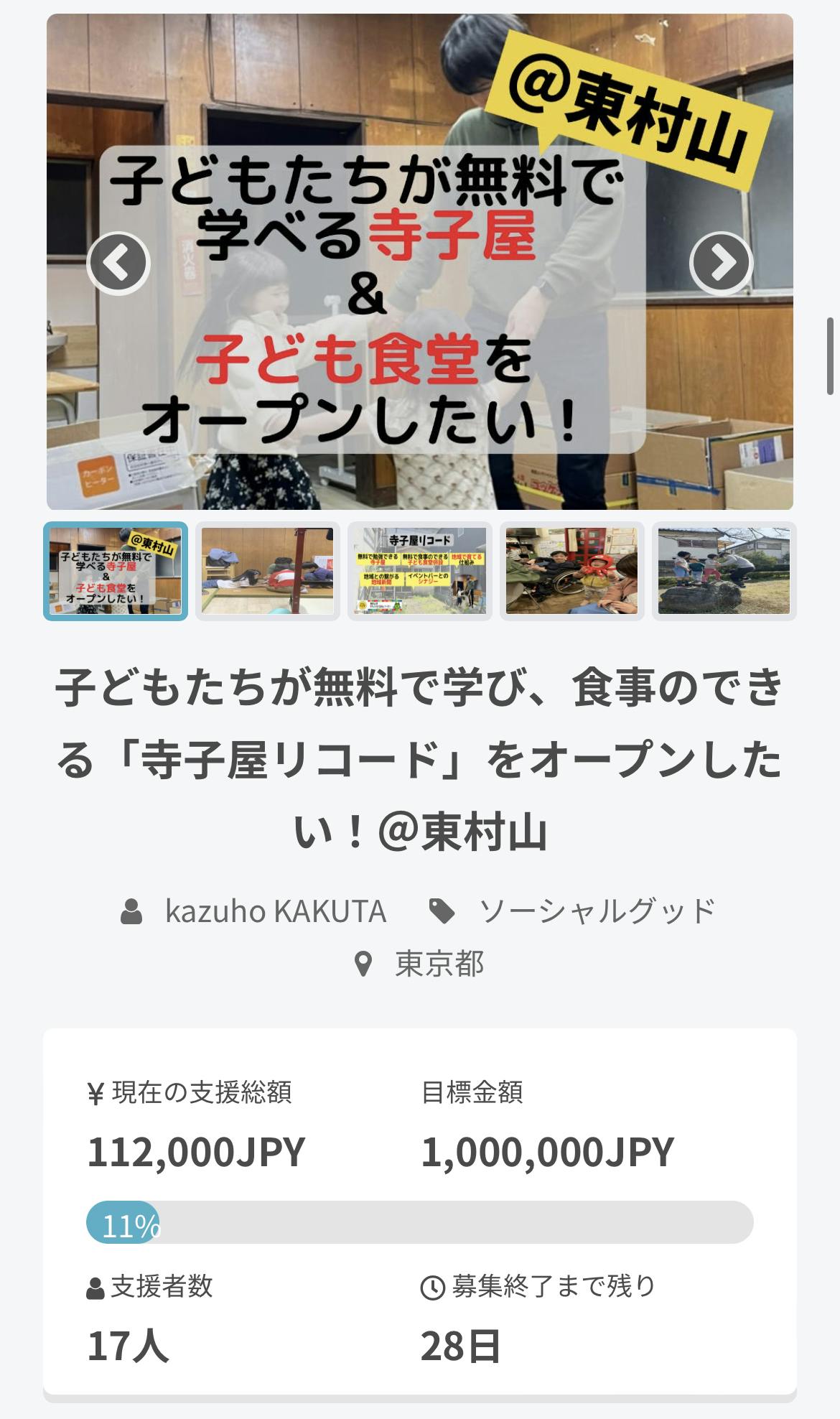 昨日、6月1日より開始しました「寺子屋リコード」を作るクラウドファンディング。初日で11%、17人の方々にご支援いただきました。