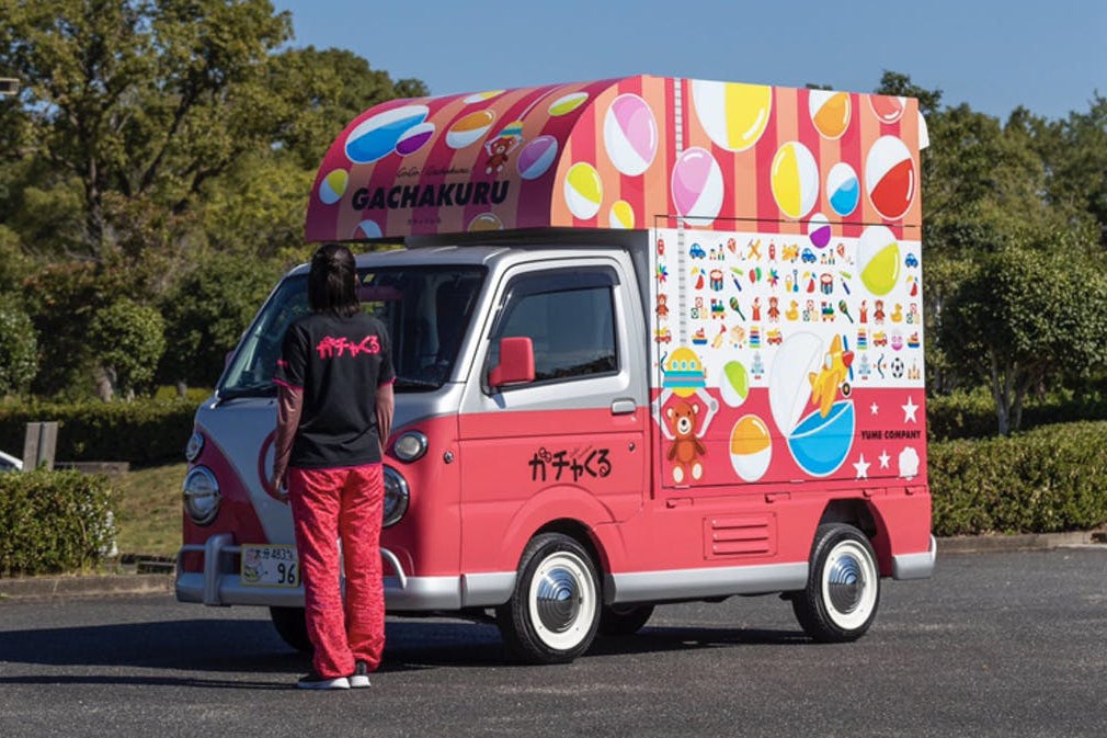 ガチャくる号は、軽トラックの荷台部分に、シェルを取り付けた移動販売車です。
