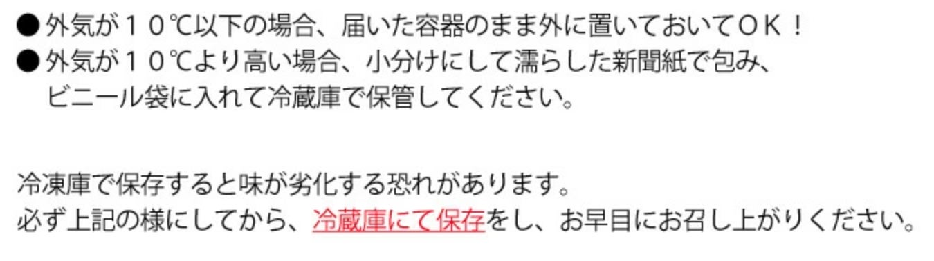 発泡スチロールに詰めて発送いたします。荷物が到着した日から、牡蠣は3日間、生でも食べることができます。食べきれない場合は、殻付カキだと剥き身の状態にし、冷蔵庫で保管してください。次の日からは、カキフライや鍋など、加熱して食べていただくのがオススメです。