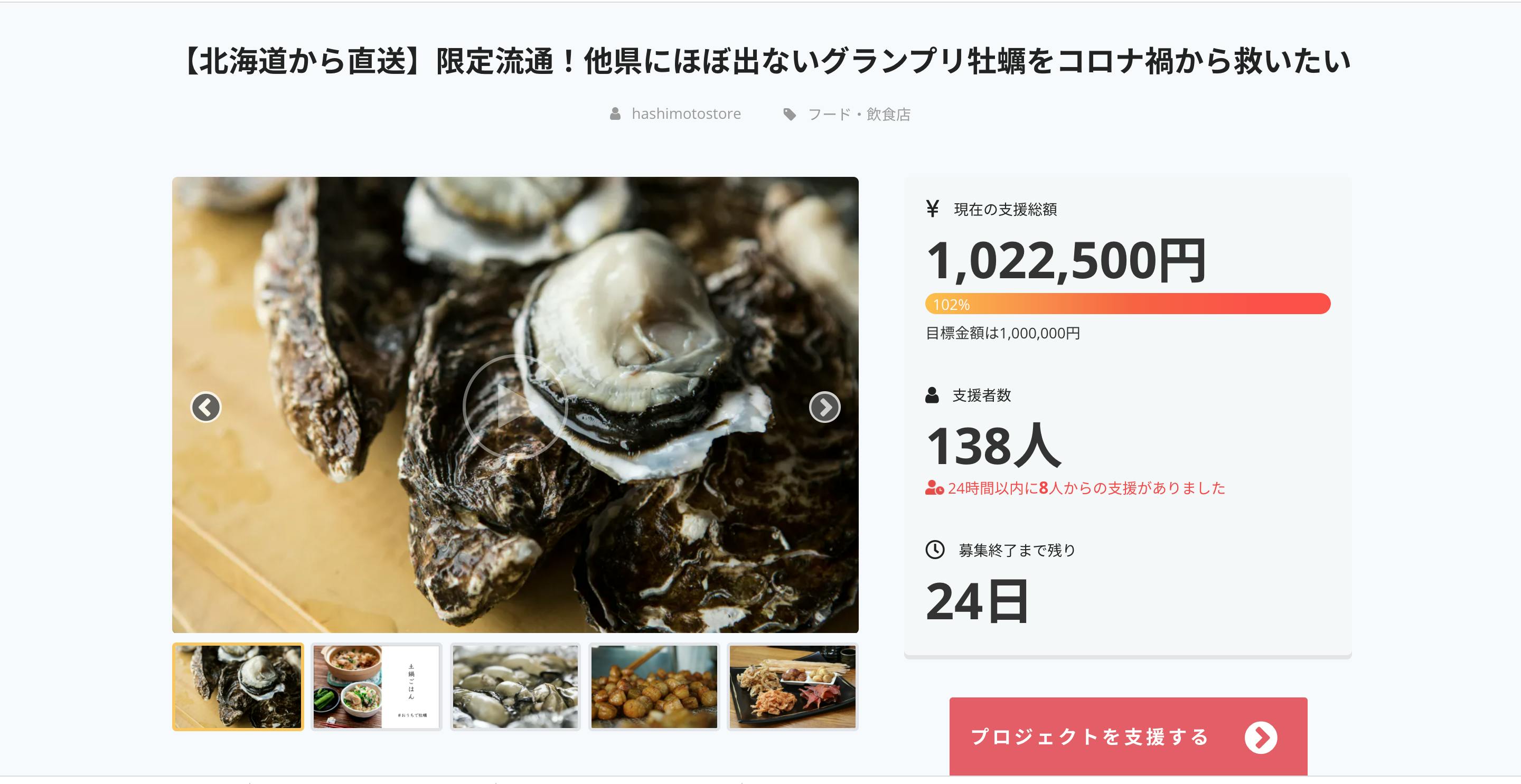 「前回美味しかったのでまた支援させていただきました」