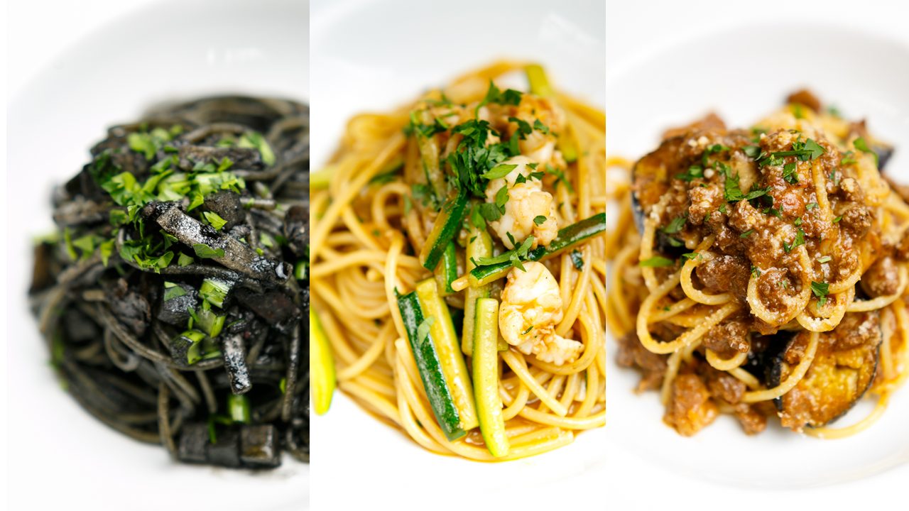『パスタソース3種(イカ墨ソース、ワタリガニと伊勢海老のソース、ボロネーゼソース、乾燥パスタ麺500g)』