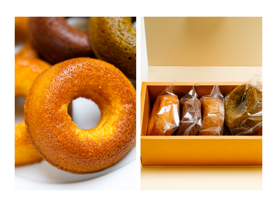 【しっとりとやさしい】食感を味わいながらも、油で揚げずに【焼き上げて作る】ヘルシー志向の焼きドーナツに仕上げております。