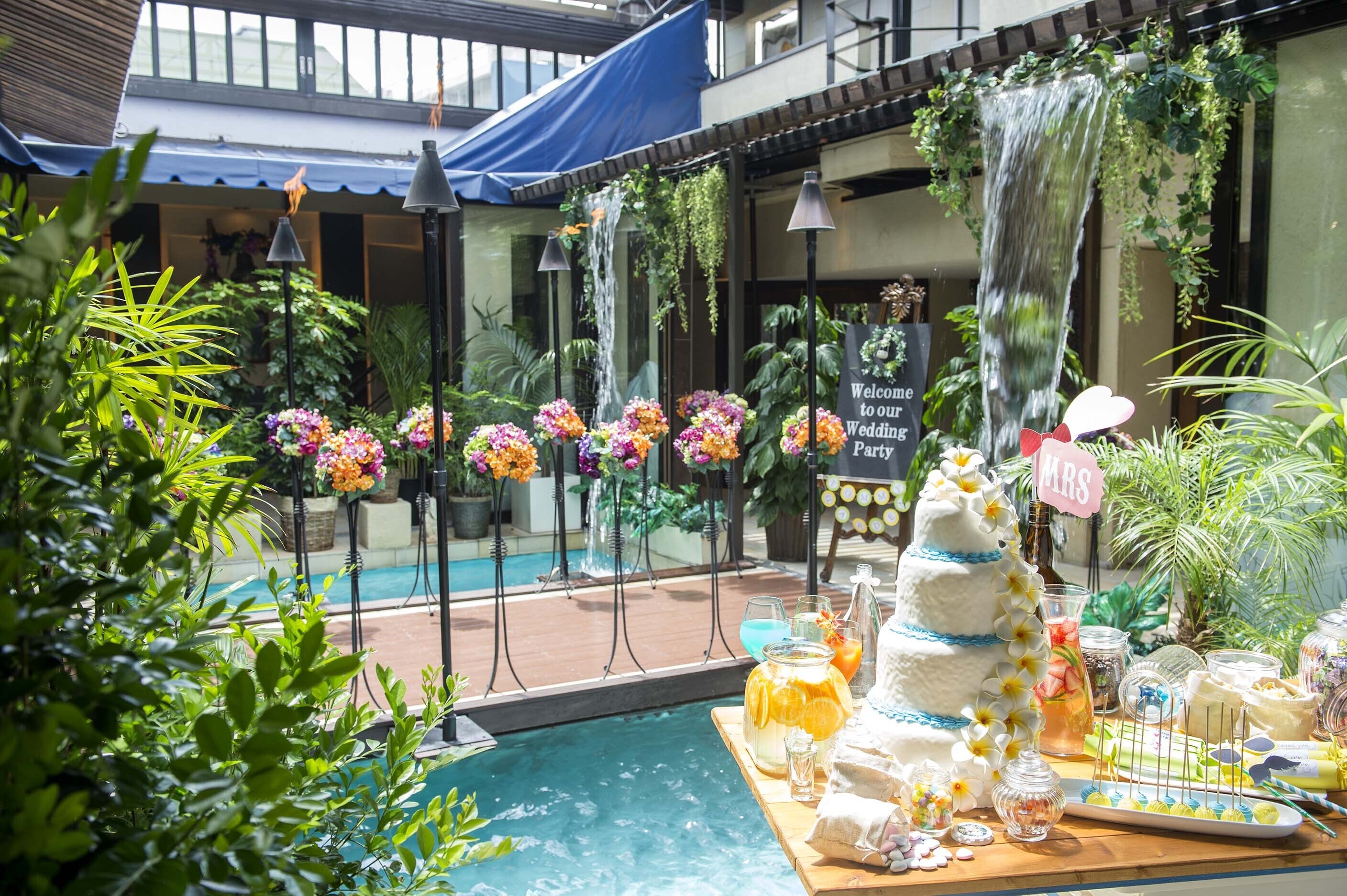 6Fトミーガーデンではプールサイドでゲストの皆様と共にバルーンリリースをしたり、地下会場ではご友人の皆様がバンド演奏をしたり。
