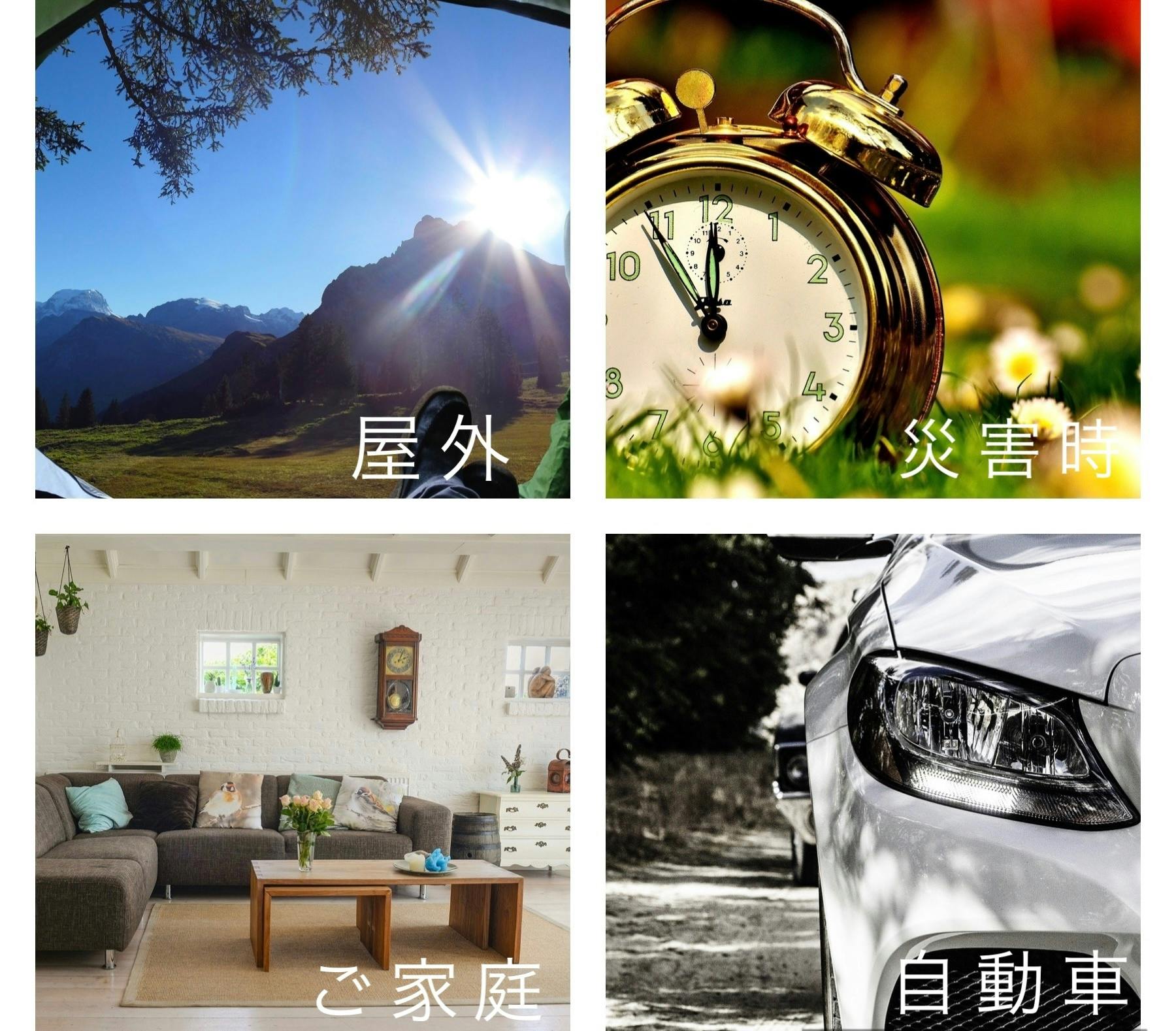 キャンプやドライブやご家庭で、万が一の災害時の備えにも。