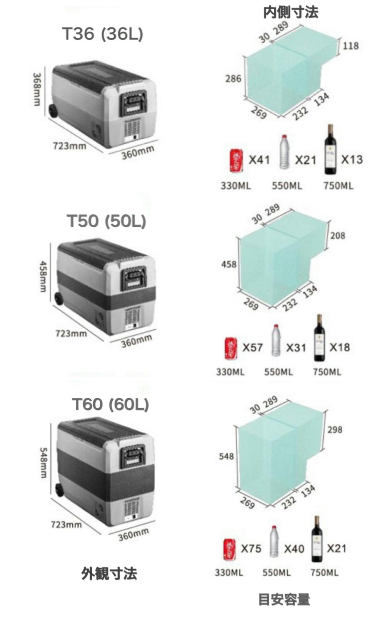 「ー20℃までの超冷却」 「選べる大容量、36・50・60L」 「デュアル調節機能」 「環境性能にも配慮」 厳しいテストにて認定された抜群の耐震性能。