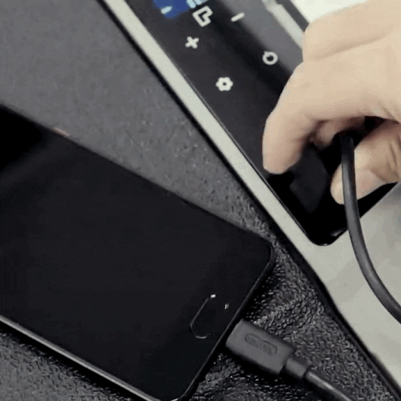冷蔵庫に備え付けのUSBポートに接続しお手持ちのスマホやタブレットなどUSB対応製品に充電可能です。
