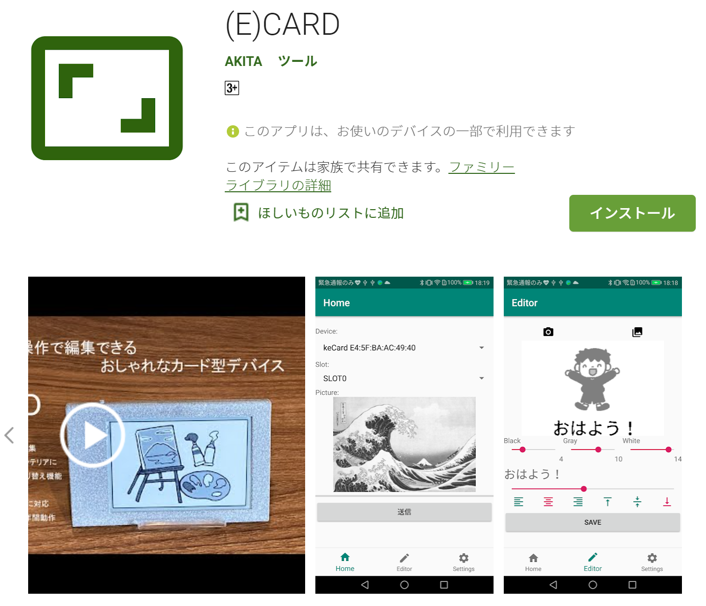2021/03/13 21:56皆様、こんばんは。ついに、AndroidアプリのVer1.0が完成し、GooglePlayストアに登録が完了しました!まだ機能が少し貧弱ですが、表示イメージを編集する最低限の機能と、表示イメージを(E)CARDデバイスへ転送する機能はあります。使いにくい点など、皆様のご意見をお聞きし、フィードバックをしていこうと思っています。今後とも何卒よろしくお願い致します。GooglePlayストアへは、下記のリンクからアクセスする事ができます。https://play.google.com/store/apps/details?id=jp.kecard部品が入手できず基板の製造が遅延している件ですが、対象の部品の代用品を見るける事ができました。これから基板製造の依頼を行いますので、スケジュールがはっきり致しましたらまたご連絡させて頂きます。ご迷惑をおかけして大変申し訳ございません。(ざっくりですが、5月ごろの納品になってしまうかと思います。) もっと見る