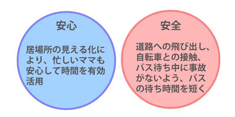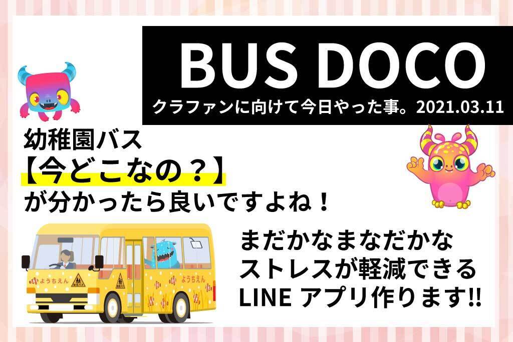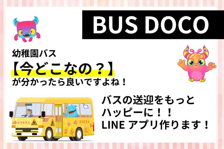 道路沿いでバスを待つ時間を減らす事が出来れば、ママの緊張感も短時間で済むだけではなく、いつ頃到着するのか分かれば忙しいママの時間も有効活用できると思い、LINEアプリを開発しています!