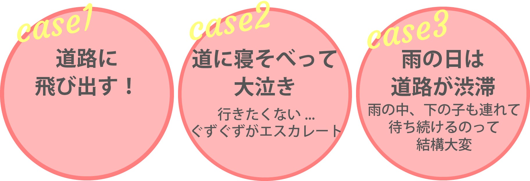 ⇒子供って道路でも関係なしに寝そべって大泣きします。行きたくない...が待っている間にエスカレートする事も