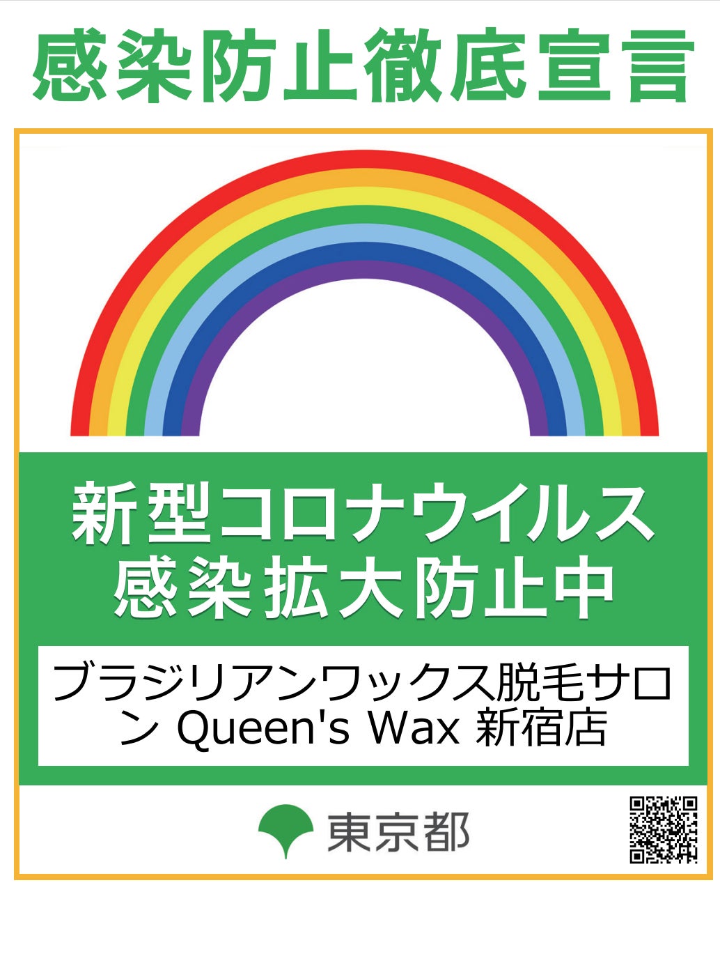【Queen’s Waxは全店コロナ感染予防対策徹底宣言ステッカー取得済み】