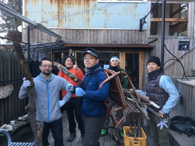 山に登って枯枝を集めてきて、それを薪ストーブでパチパチと燃やすのを楽しみ、それを囲んでみんなでご飯を食べるというとてもシンプルな活動です。燃料の調達と里山の整備、そしてアウトドアアクティビティの楽しみという一石三鳥を目指しています。