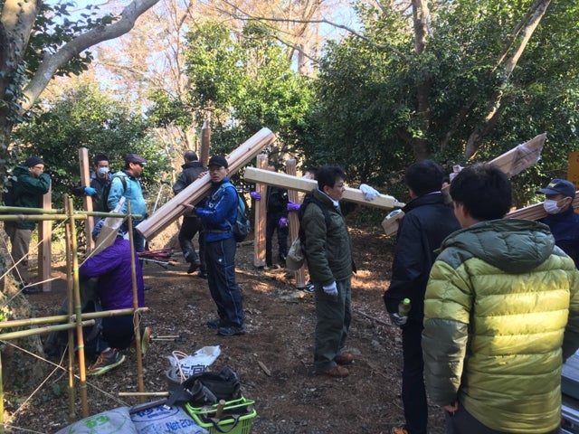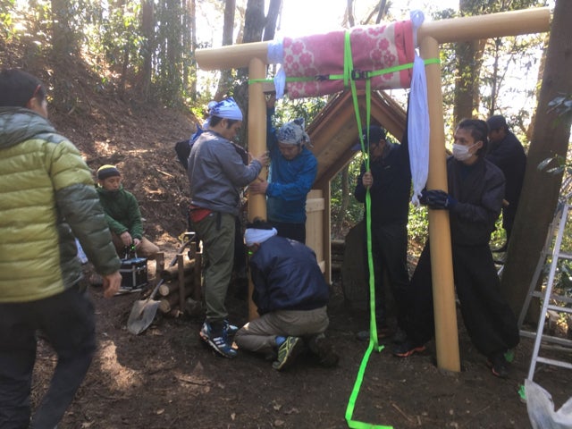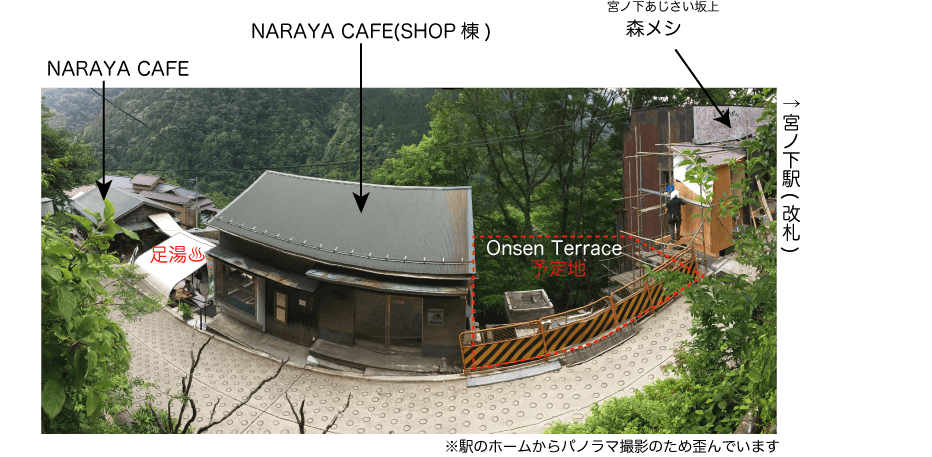 2021/05/16 12:48例年になく早い梅雨が目前に迫っているようですが、五月晴れに恵まれた先日5/12、第1回の男衆の集いを開催しました。東京には再び緊急事態宣言が、神奈川も都市部には蔓延防止が出され、大々的に宣伝することはできませんでしたが、おもに近隣から多数の「男衆」(といっても女子もいます)にご参加いただきました。今回のクラウドファウンディングでも何人か新たにメンバーに加わっていただきましたが、東京など遠方だったり、社内の規定があったりで参加が叶わなかった方も多く、せめて雰囲気だけでもということで当日の様子をレポートさせていただきます。Onsen Terraceプロジェクト、スタートにあたる今回は「浅間神社参拝」が第一のミッションです。2年前に地元のみなさんと「男衆」とで協力して再建した浅間神社、まずはプロジェクト始動の挨拶がてら、みんなで掃除をするために登山しました。前後に雨降りの日がありましたが、幸い当日は良いお天気。幸先の良いスタートです。登山鉄道の踏切を越えて登山道に入ります。ちょっとした聖域感がありますね。ここから急な登りが続きます。途中、休憩を挟みながら45分ほど、眺望もなく一人だと結構しんどい道のりですが、大勢だと話しながらいつのまにか到着してしまいます。つづら折りの山道なので意外と声が通り、誰かの噂をしていると下から「なんか言った?」なんてやりとりがあるのも楽しいです。到着するとすぐに清掃開始。プロ仕様のブロワーも持ってきてくれていたので、職人の3人は落ち葉を落としながら、杉皮葺屋根をチェック。他の面々は石碑に水をかけて磨いたり、柱を擦ったり、、、ブロワーのスイッチを切り、仕事が終わると静寂が訪れます。森の中にいることを実感します。最後に皆で参拝し、そこからさらに20分ほどの浅間山山頂を目指しました。山頂は気持ちの良い天然の芝生です。適度に斜面になっているのでゴロゴロしたくなります。ということでしばしゴロゴロ、、、ここまで来るとハイカーの方もちらほら、ですがこの環境なのでソーシャルディスタンスはばっちりです。さて、来た道のりをカフェへと戻ります。下りはコースタイムも短くなりますが、足には結構こたえます。お昼をまわり、皆お腹をすかせてNARAYA CAFEに戻ってきました。ほんとにいい感じにお腹が空きました、、、、そして、そこには、、、、今回の男衆初回には僕らやスタッフも参加したかったため、定休日水曜日の開催としました。人数も多くなり、コロナ渦でもあるため、昼ごはんが悩みでした。そこで、一肌脱いでくれたのがスタッフCielちゃんのお父さん。保養所を管理されていたプロの料理人です。数日前から買い出し、仕込みに奔走してくれて、当日すばらしい料理を作ってくれました。豪華すぎる「お好み丼ビュッフェ」です。(ごはんと味噌汁は森メシに協力してもらいました)おのおのお皿によそって、足湯で食べました。満腹になったところで、今回の第二のミッション、Onsen Terrace計画の説明です僕から、模型を交えて全体の計画を説明しました。まだ国の補助金を申請中の部分もあり、すべて実現できるかは未知ですが、いずれにしても今年はNARAYAにとってターニングポイントになると思います。Onsen Terrace計画への通路としての役割もありますが、まずは現在の1Fテラス席部分を改築して足湯席にする工事を先行して行います。設計、見積もりも順調に進んでいるため、早速、来週から解体作業に取り掛かります。現場に実寸で板を立て、シミュレーションしてみました。こんなスケール感の足湯席になる予定です。イメージ図右手のデッキは通路となって、Onsen Terraceへと繋がります。森メシ側では外壁工事(トタンを板張りにする工事)がスタートしました。オリンピックも開催するのかしないのか、、、、と先の見通せない日々が続きますが、やっぱり体を動かして、美味しいものを食べて、気の合う仲間と話すことは大事です。次回からはもうすこし小編成での男衆開催となると思いますが、工事の進捗に合わせ、要所要所で開催していきたいと思います。早速ですが、来週21日(金)、第1回解体作業をいたします。男衆募集します。もし「たまたまその日休みだ」なんて方いましたら、ご連絡ください。 もっと見る