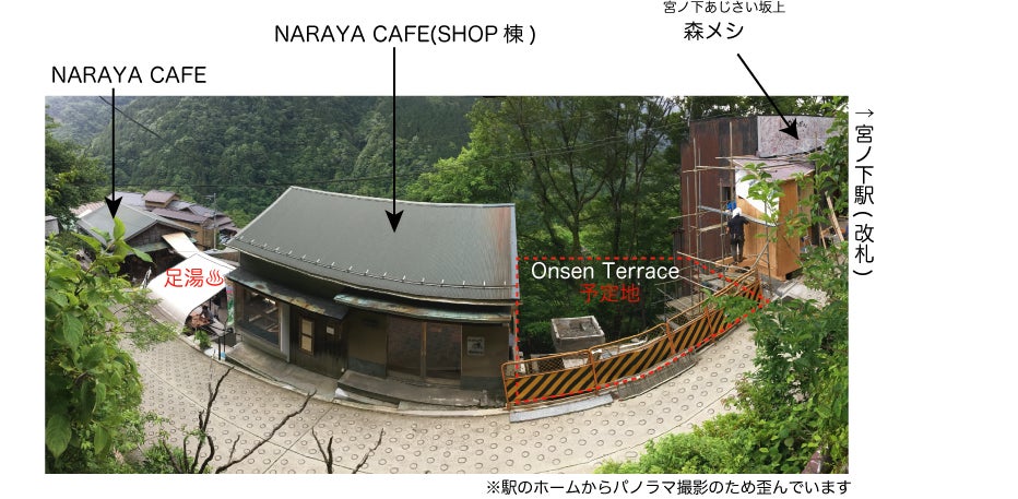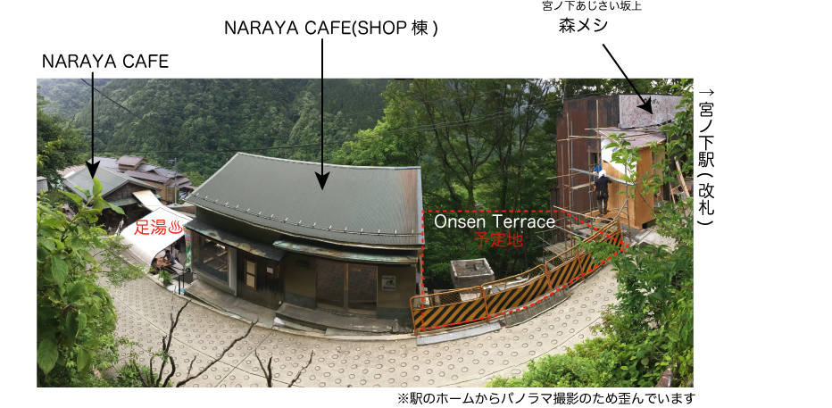 NARAYA CAFEより宮ノ下駅に近い、駅の改札目の前に「宮ノ下あじさい坂上 森メシ」があります。
