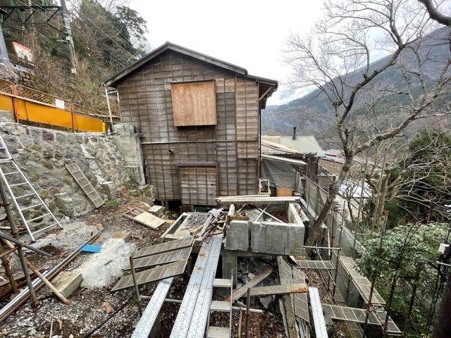 緊急事態宣言が続く中、ひとまずNARAYA CAFEとOnsen Terraceとの通路となる部分の解体を先週行いました。