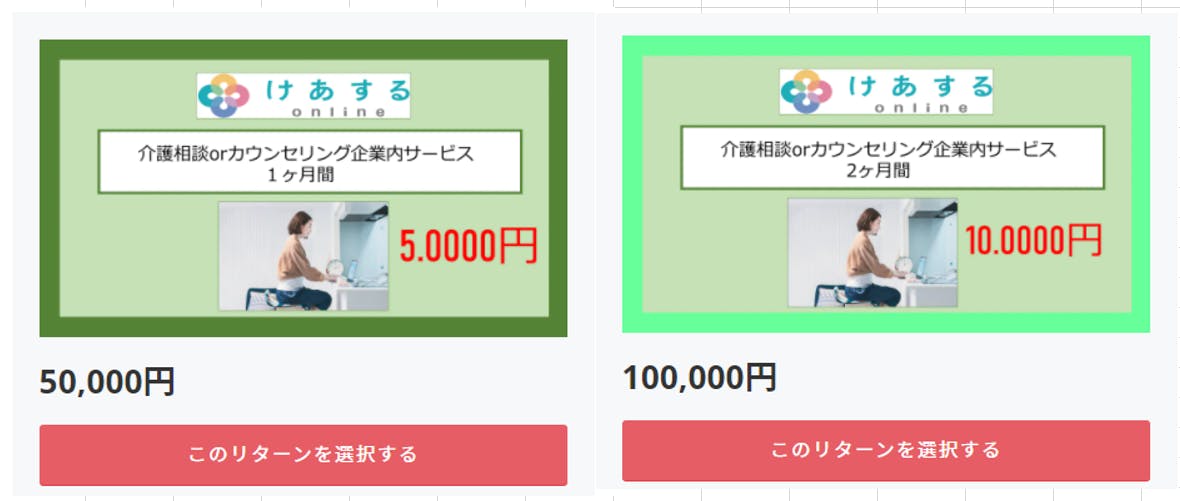 リターン50,000円「介護相談・カウンセリング企業内サービス」1か月