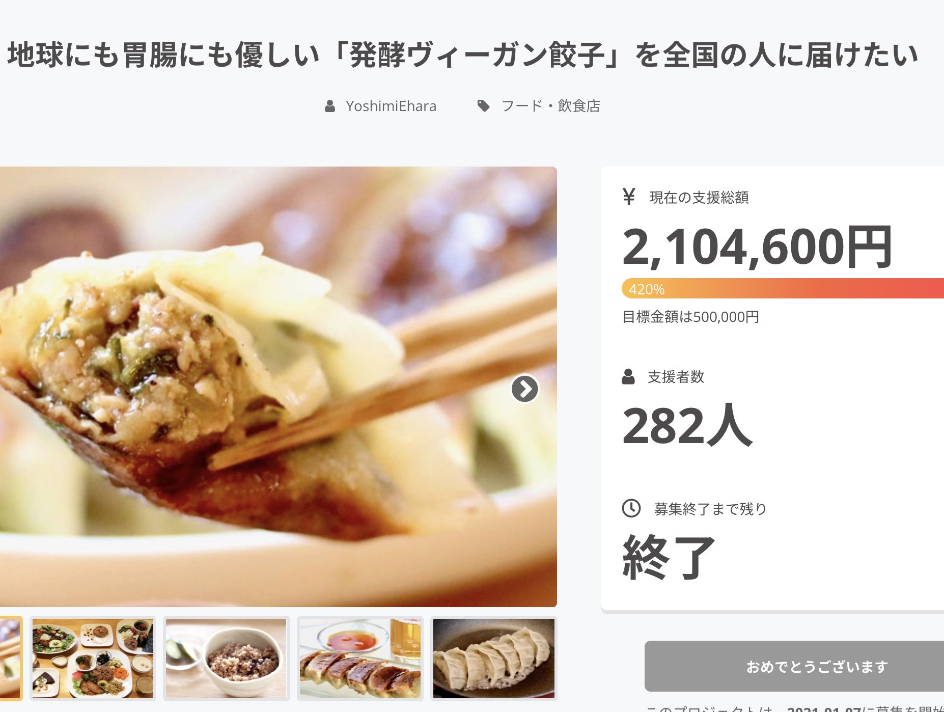 4年半ぶりの活動報告となります。ヴィーガン餃子を届けたい!というプロジェクトへの支援、大変ありがとうございました。私自身、食の意識を少し変えただけで・まったく太らなくなった(寝る前の甘いものもOKなのに!)・体調が安定して気分も前向きに・モチベーションがずっと高くいられる食べるもので体ができていることと「食が心と人生まで変える」ことを実感し、それを伝えていきたいという想いは変わらず、必死にお店を続けています!そんな中、10月18日(土)に、こんなセミナーをやることになりました。今回、参加費500円で、1500円相当のランチ付きです!(アクサの協力で実現ですが、勧誘などありませんのでご心配なく)※まだお席ありますので、スケジュールあえば是非と思い、久しぶりに活動報告にいれさせていただきました。私がずっとこだわってきた「大の肉好きでも満足できる菜食料理」を食べていただきたいです。そして「玄米って体にいいけど不味いよな」と思ってる方がいらっしゃったら、カフェむすびの極上の酵素玄米の感想をいただきたいです。直前のご案内となってしまいましたが、お時間合う方いらっしゃいましたら、ぜひいらしてください【10/18(土) 新小岩BestiesTokyo 開催】ランチ付きセミナー参加者募集食べながら学ぶ!健康と未来のためのセミナー腸内環境が心と体、人生まで左右する?BestiesTokyoの江原佳美さんが、腸と食の大切さをやさしく解説します。試食付きのセミナー+ライフプランミニ講座もあり!日時:10月18日(土) 第一部 11:00〜12:20/第二部 12:20〜13:00場所:BestiesTokyo(新小岩駅南口から徒歩5分)※新小岩駅は東京から快速で12分です!参加費:500円(ランチ付き)事前予約制!詳細・ご予約は https://beagent.co.jp/5goqおいしく学んで、心も体もごきげんにぜひお気軽にご参加ください 。