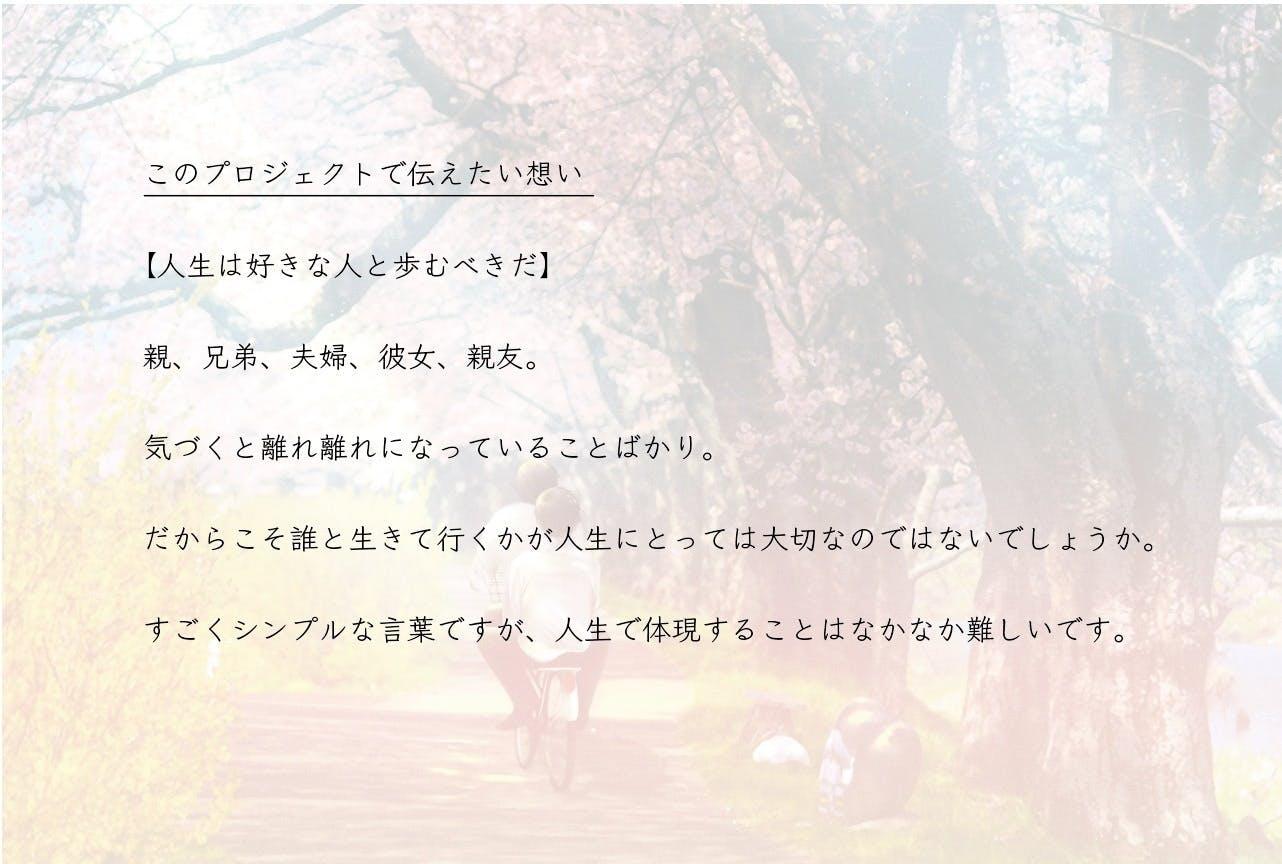 大切な人との関係をもう一度考えてもらえるような映画の完成を目指す。