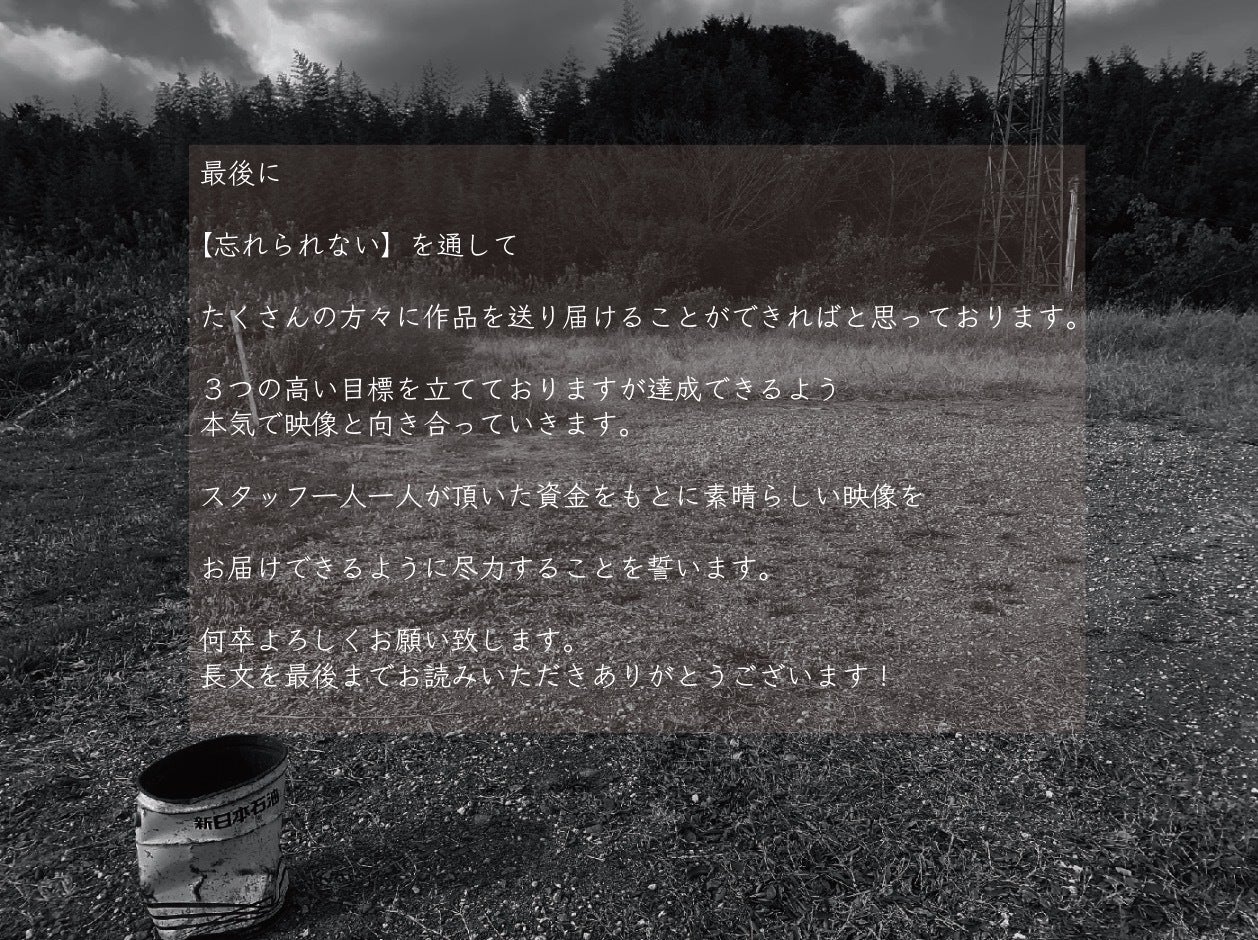 【忘れられない】(仮)クラウドファンディングも残すところ一週間を切りました。