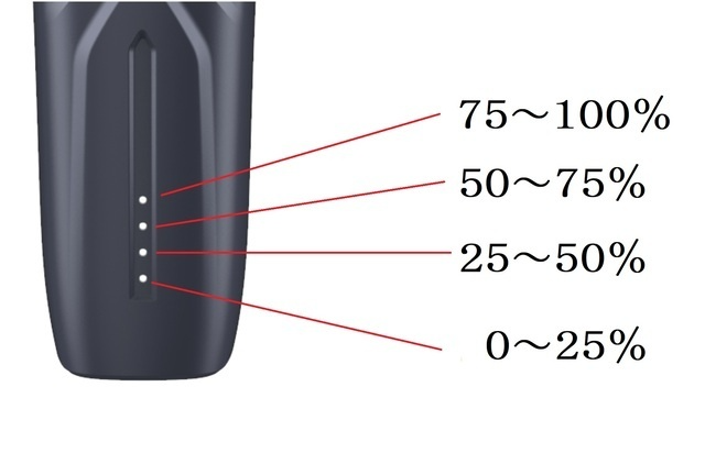 電池残量表示もLED点灯でわかりやすいLEDインジケーター式を採用。