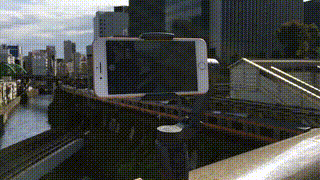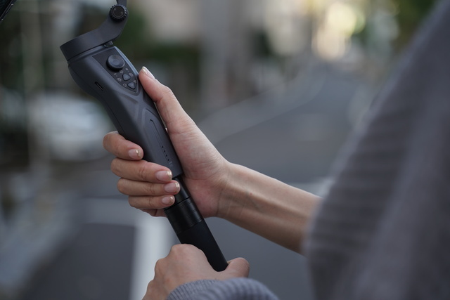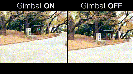 背景の左右バランスを崩さずに撮り続けたい状況で、持ち手の動きにジンバルが反応すると画面が左右に振れてしまう。3軸の動きを無効にすることで、綺麗な直線移動撮影ができる。