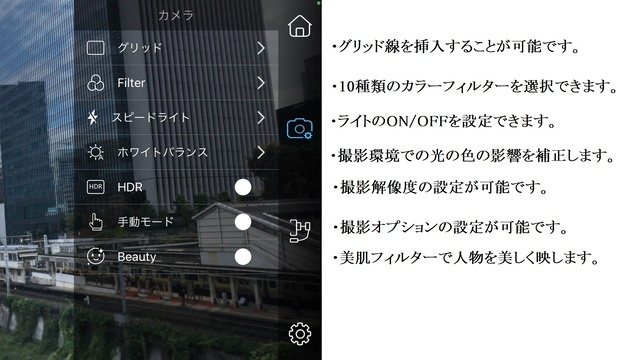 使い方も二つのボタンとジョイスティック、シャッターボタン、アプリにてほぼすべてをサポートしコントロールすることが可能です。