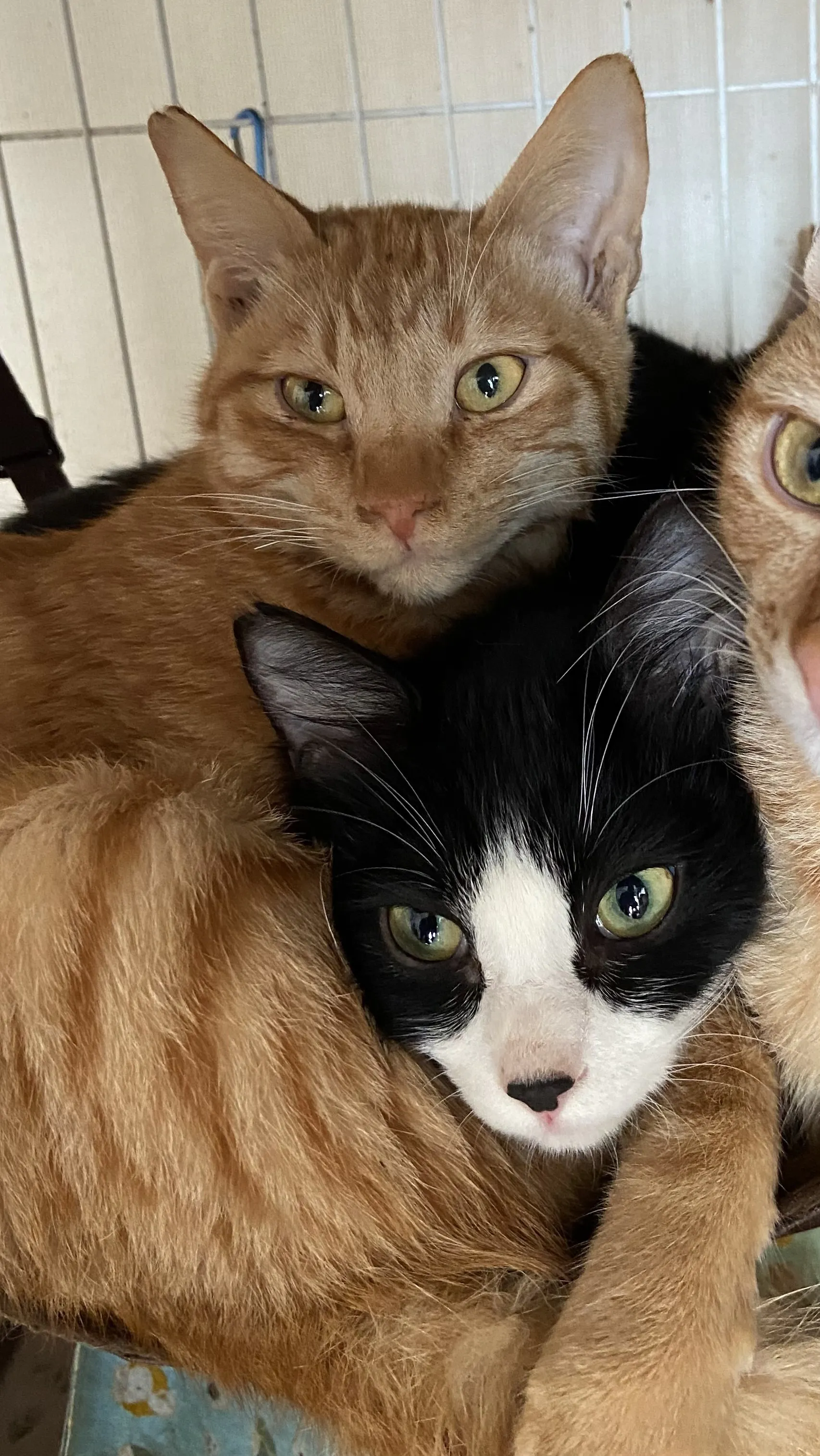 今日の写真は、なぜかにゃんもっくに3にんでひしめきあっている中の ひとり、ちゃむくん(茶とらのこ)を紹介します。ちなみに右端にいる茶とらくんは、ちゃっとくん、下の白黒はちわれの猫さんは、はっとくんです。
