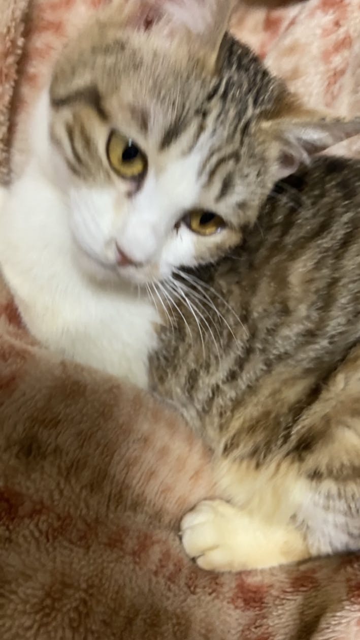 ぽえんくんは、坂東市内の畑に野良のママねこさんと子猫ちゃんたちが遊んで、畑がだめになってしまうとの苦情で保護したこです。