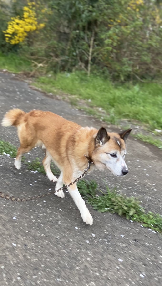 随分おとなしくしっかりお散歩できるように見えますが、彼も元気で、やっと写真の中におさまりました。