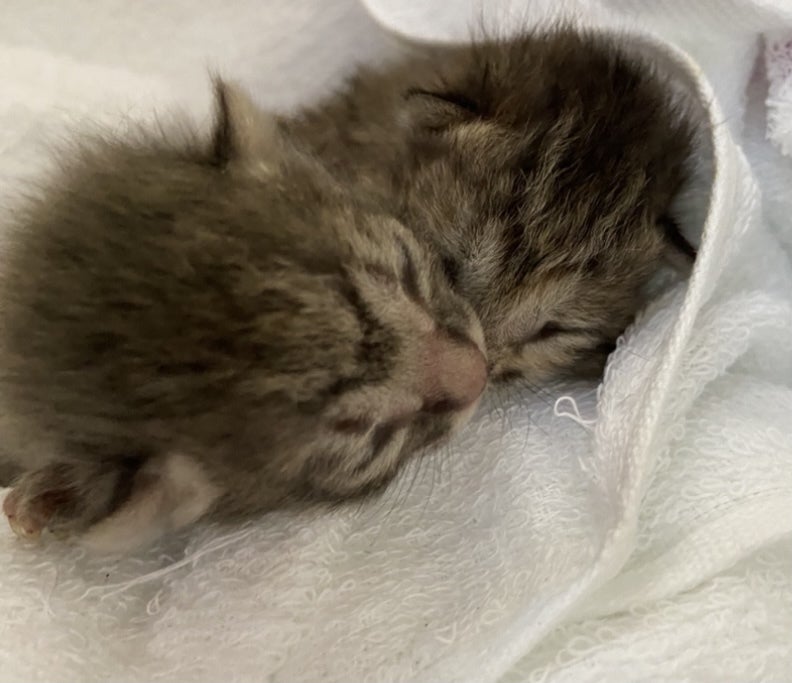 生まれたばかりの子猫がいて数時間たってもママ猫もやってこないとのこと。