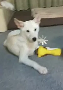ご家族とおはなしをしている間に、お部屋を探検して、目の前でシートの上でトイレして、おもちゃで遊びはじめました。