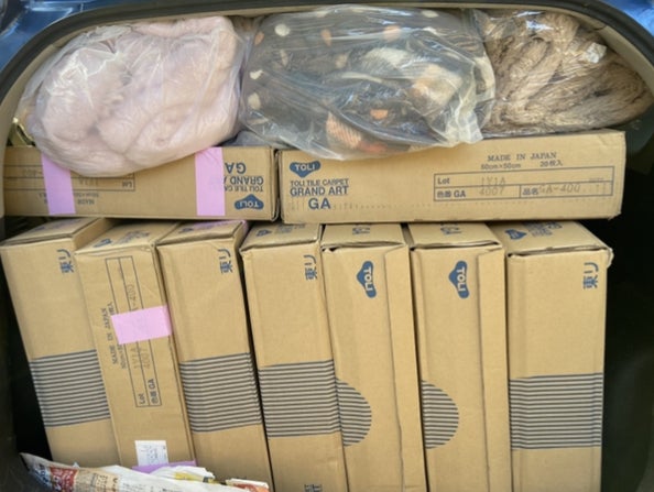 K様からタイルカーペットや毛布等ご支援いただきました。
