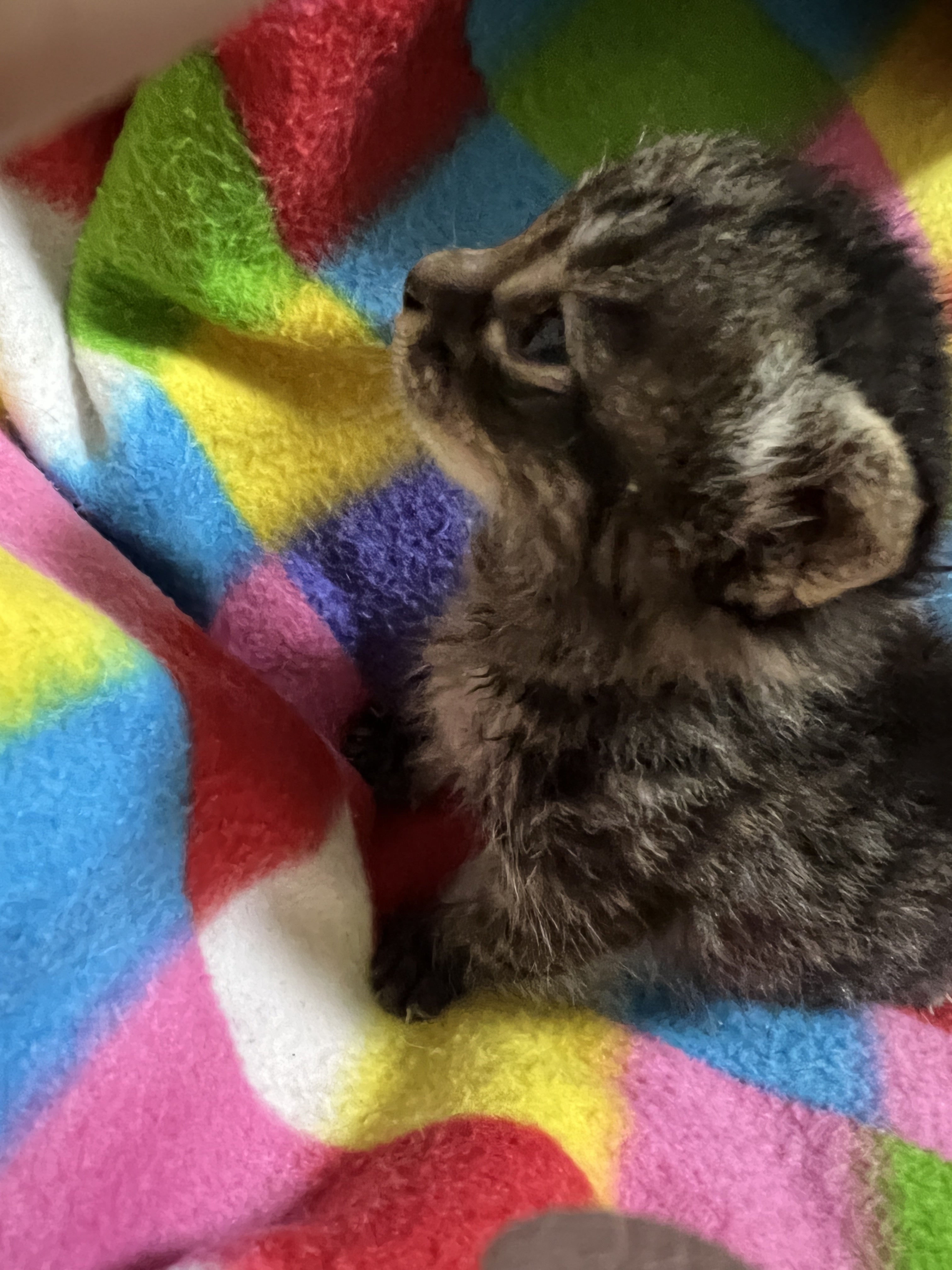赤ちゃんからだんだんと子猫ちゃんに成長してきた感じがします。