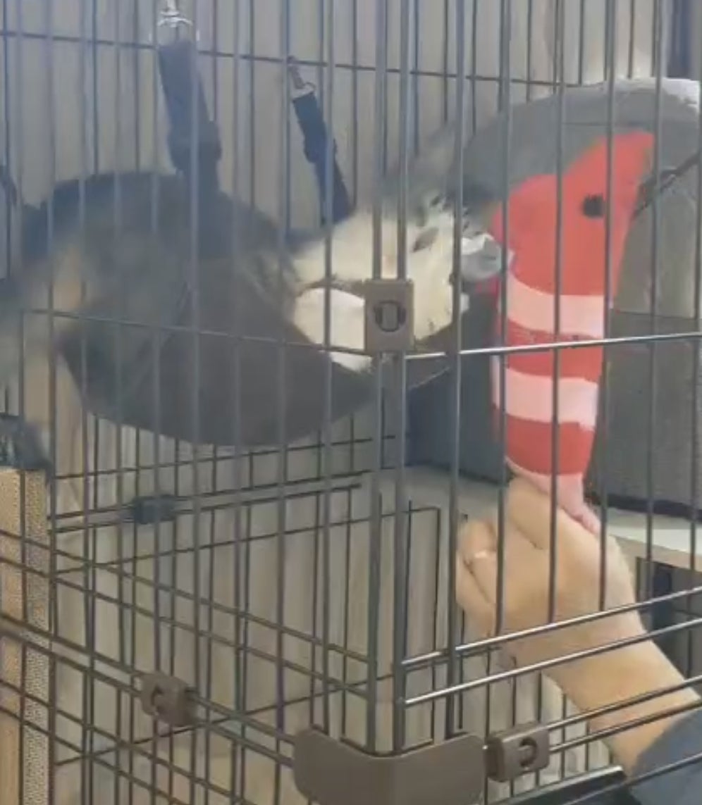 今ではケージの外でもなでなでさせてくれるようになりました♪