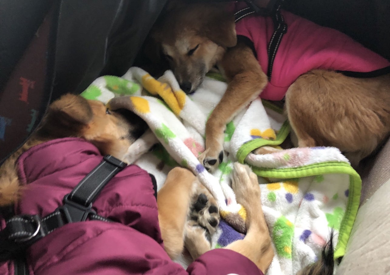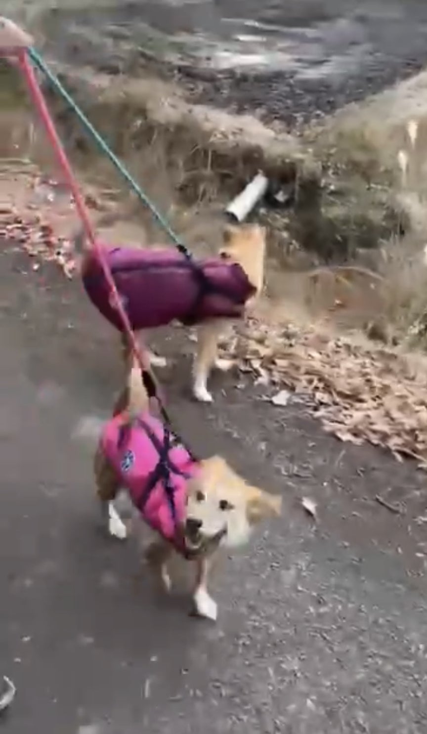 市役所の捕獲箱で捕まっているわんちゃんたち。