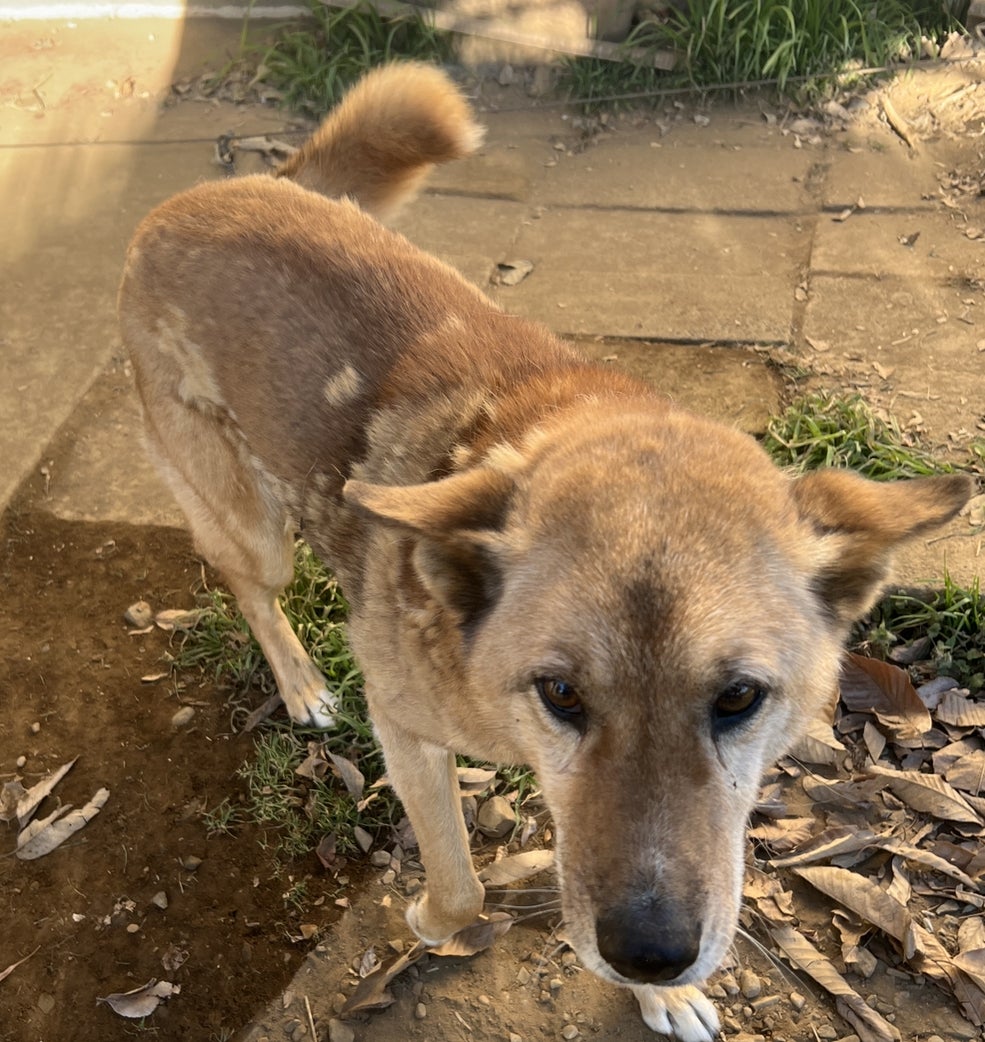 衰弱して頭を自力で上げられなかっためめちゃん。保護したのは昨年3月。
