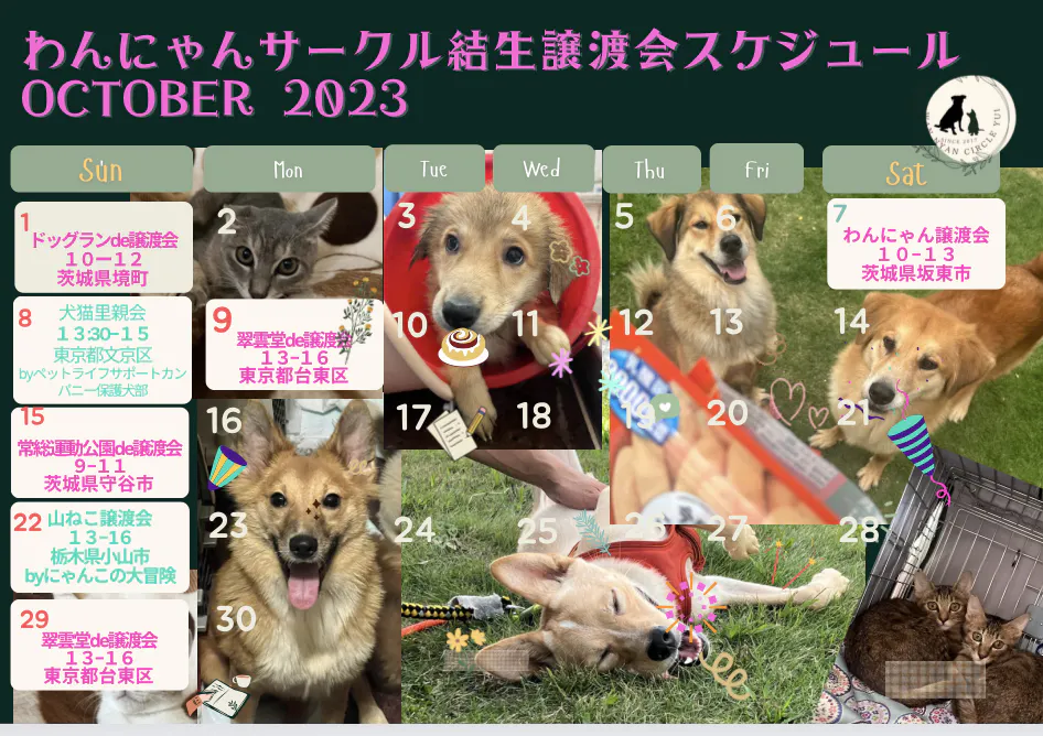 2023年10月の譲渡会情報を最新にするため、随時更新します)