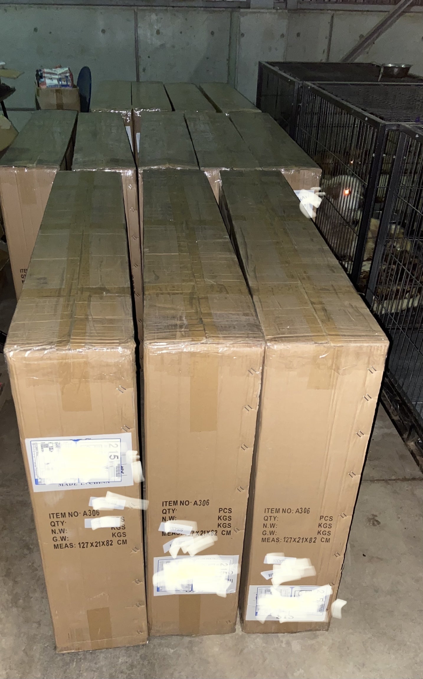 昨日、わんちゃん用の大型ケージが宅配便で届きました。12箱!そうです。実現したいことの中の1項目、大型ケージ12基分です!大先輩の保護活動をされている方からのつながりで、今回のクラウドファンディングを知った方からのご支援です。ご寄贈のお申し出は先週うかがってはいたのですが、いざ届いて、感動といいますか、頭が真っ白になって足ががくがくしました。捕獲箱をケージがわりに使っていたわんちゃん、みんな、ゆったり過ごすことができるのです。