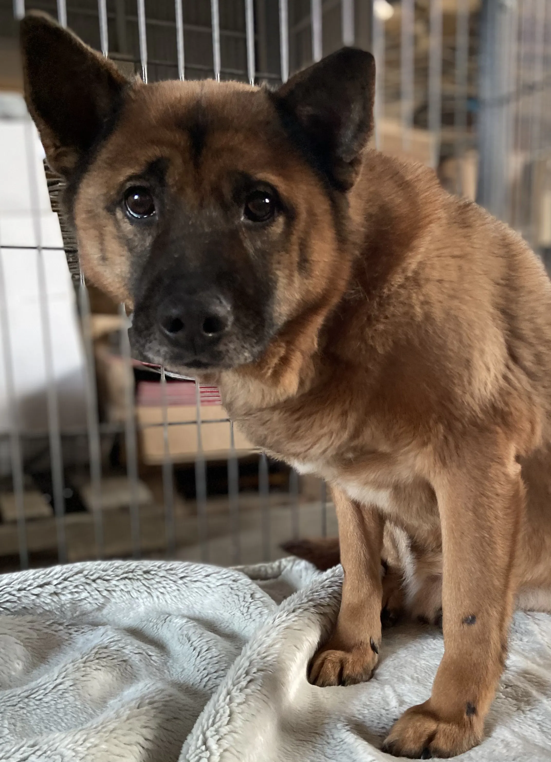 3年前に捕獲箱で保護されたときから数か月、私におしりを向けていた小心者です。しっぽにそっと指を触れるだけでもビクリ!!!(お察しの方、そうです。ビビりさんなので、ビビくんです。)声もささやくような小さな声掛けからはじめて、少し触れるようになった今、やっと普通の声で話しかけるようになってきました。