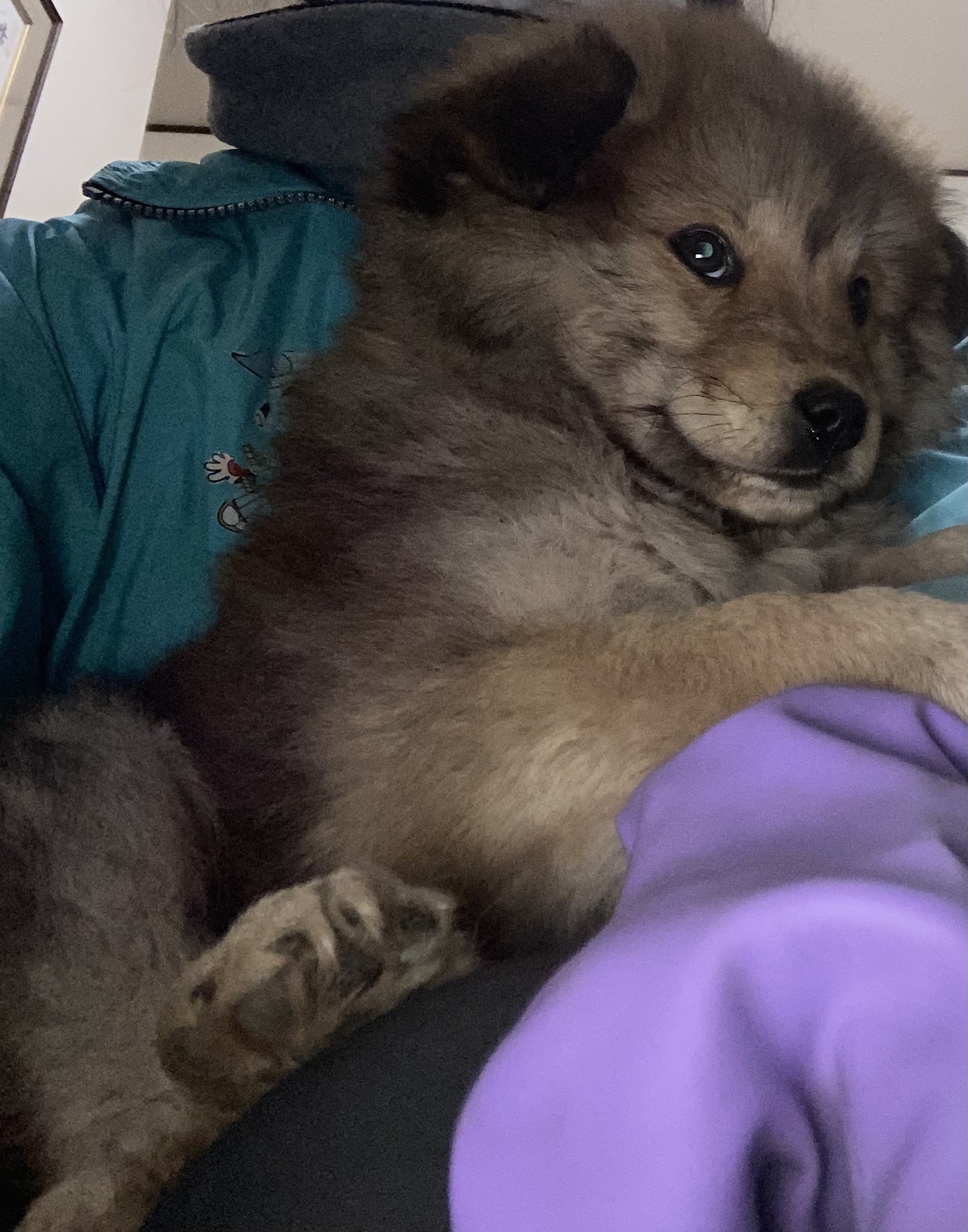 ひとりで捕まった子犬ちゃん、人との接触は初めてで、こわくてかたまってしまって、ごはんもお水も飲めない状態です。虫や病気の恐れもあるので、素手ではさわらず、ゴム手袋のままですが、ゆっくり抱っこ。じーっとじーっと子犬ちゃんの呼吸や心臓の鼓動を見守って、様子をみてから口にウェットフードをちょこんとつけました。数分たってからペロリとかわいい舌で舐めました。(よかった!)そのあと、水で溶いたウェットフードをシリンジ(針のない注射のようなもの)でお口の中に入れてあげて、すこしずつすこしずつ食べてもらいました。 馴れるまでちょっと時間がかかりそうかも知れませんが、ゆっくり馴らしてから里親さがしをしようと思っています。