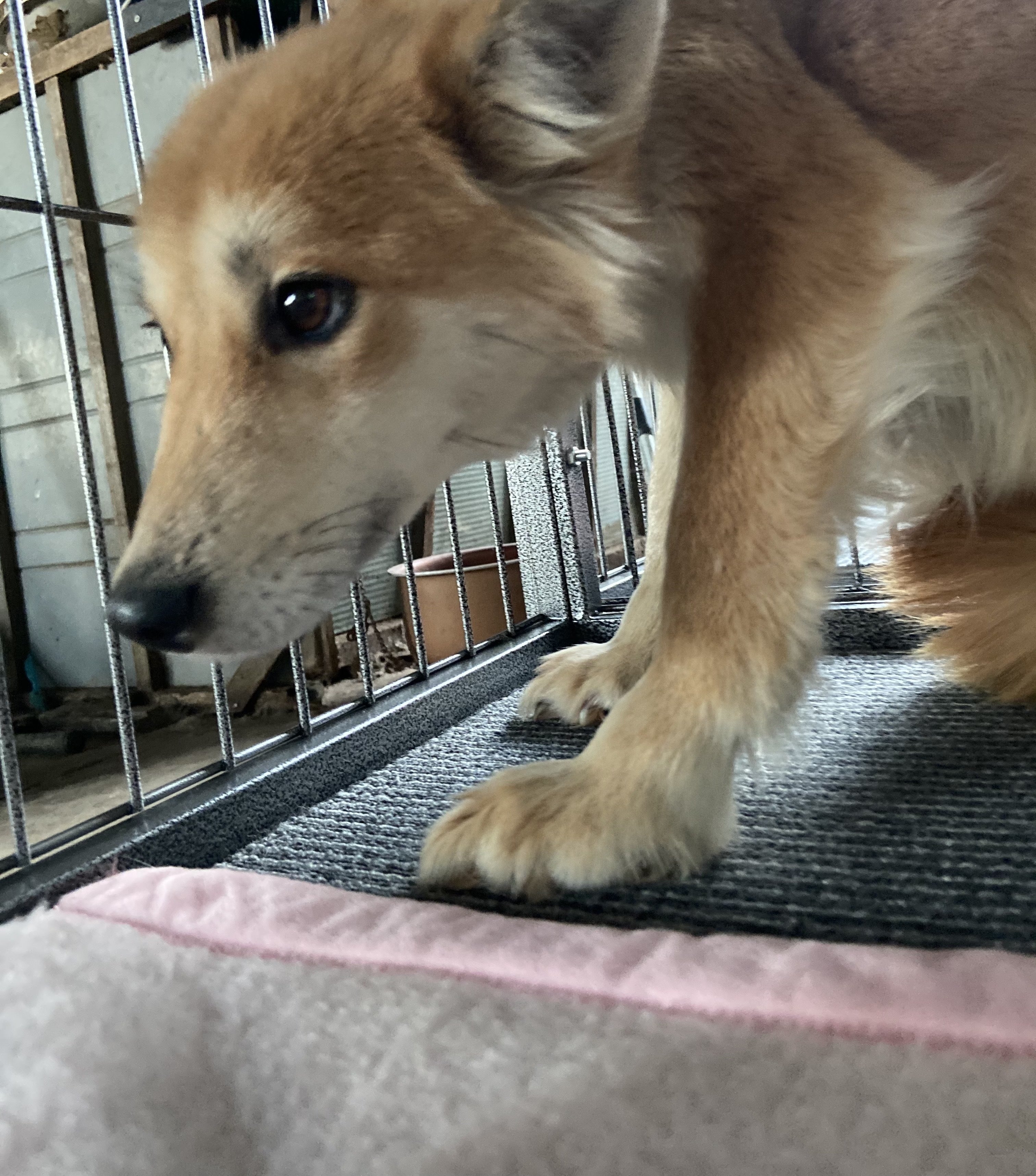 今日の写真は、保護わんの おこわちゃんです。まだまだ若いおこわちゃん、とてもこわがりさんです。市の捕獲箱に入ったときは、もう成犬といってもいいくらいの子犬でした。こわがりすぎて捕獲箱の奥のほうで縮こまっていて、首輪のあともないし、苦情(野良さんは苦情の対象なんですよね)の様子からして、飼い犬ではありません。もっと幼い頃に捕まれば、もう少し慣れて、家族に迎えてもらえるのもすぐだったかも知れません。