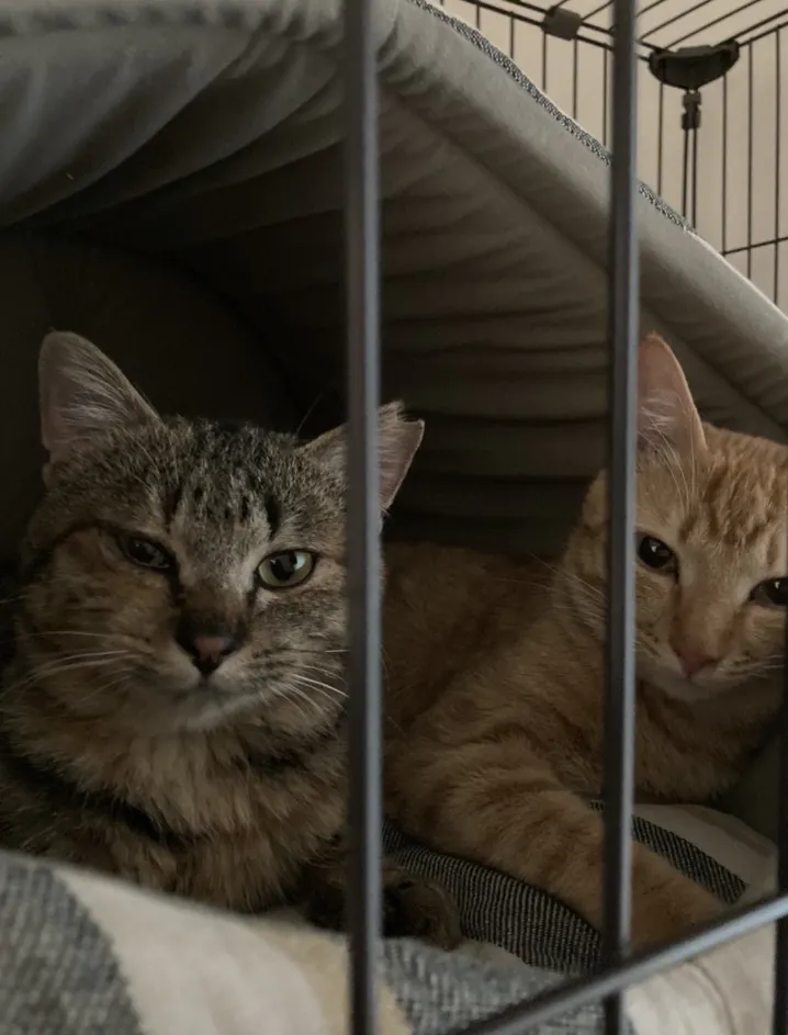 写真でくつろいでいるふたりは、ちゃっとくんと、らきちゃんです。