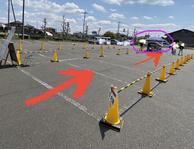 やじるしの方向に車を進めていただき、奥のテントに横付けして、受付、問診、注射。