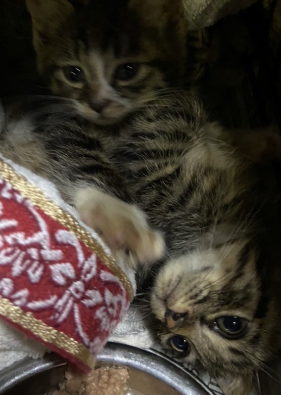 寝顔を写したつもりが、しずかに目をあけていた子猫ちゃんたち。