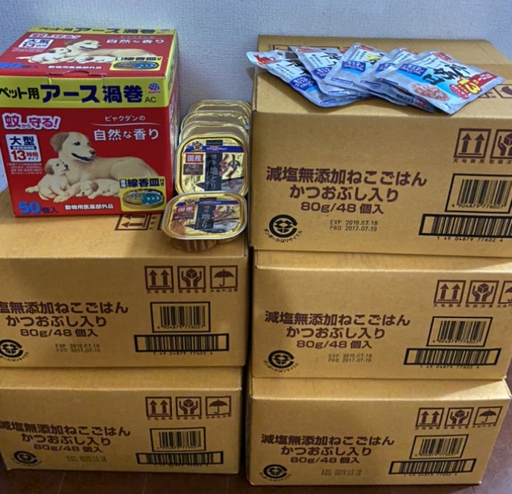 A様からキャット・。ドッグフードと蚊取り線香いただきました。