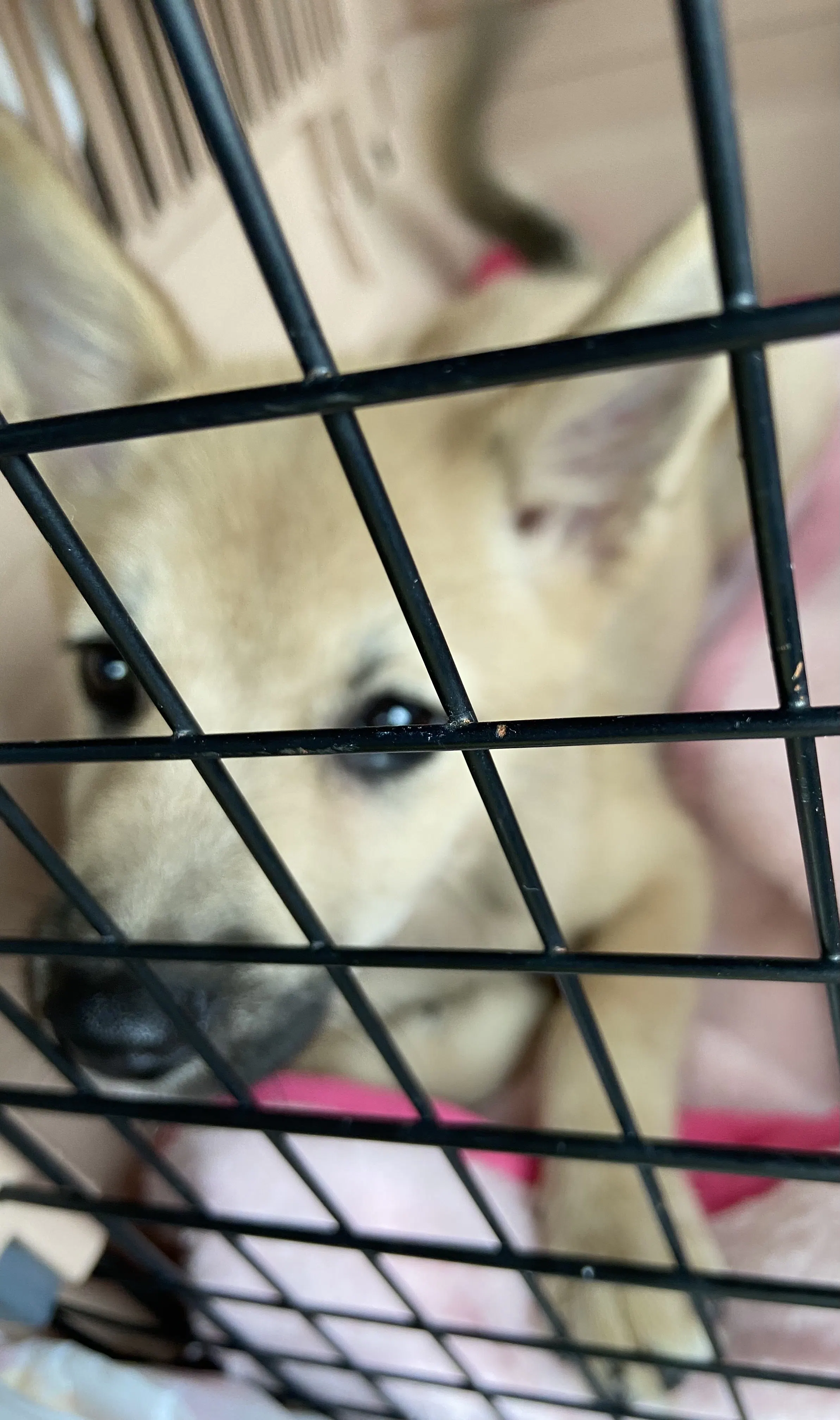到着しても最初はケージの近くでじっとしていました。
